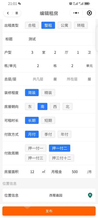 支持用户发布、编辑租房