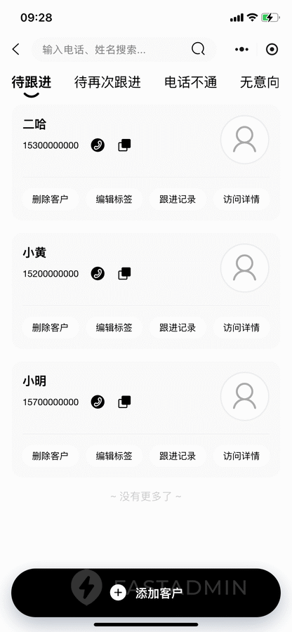 普通用户进入小程序默认进入线索公海,员工可在小程序端领取线索,管理员可在后台分配线索到指定员工。