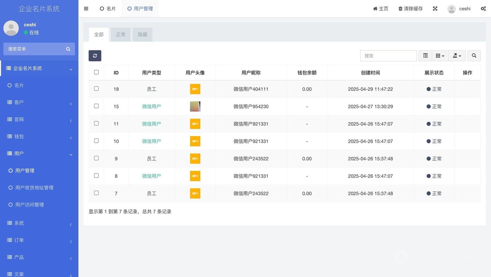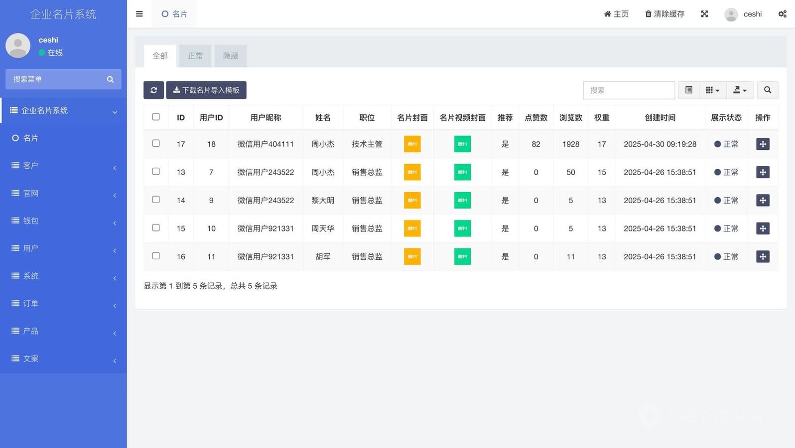 后台支持批量上传员工名片信息,员工登录小程序后可修改,员工手机号需与员工登录小程序的手机号一致。