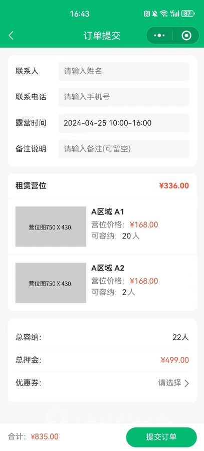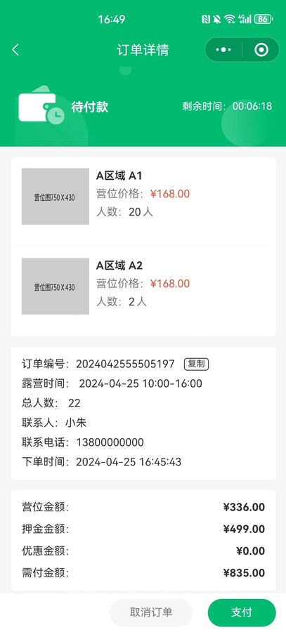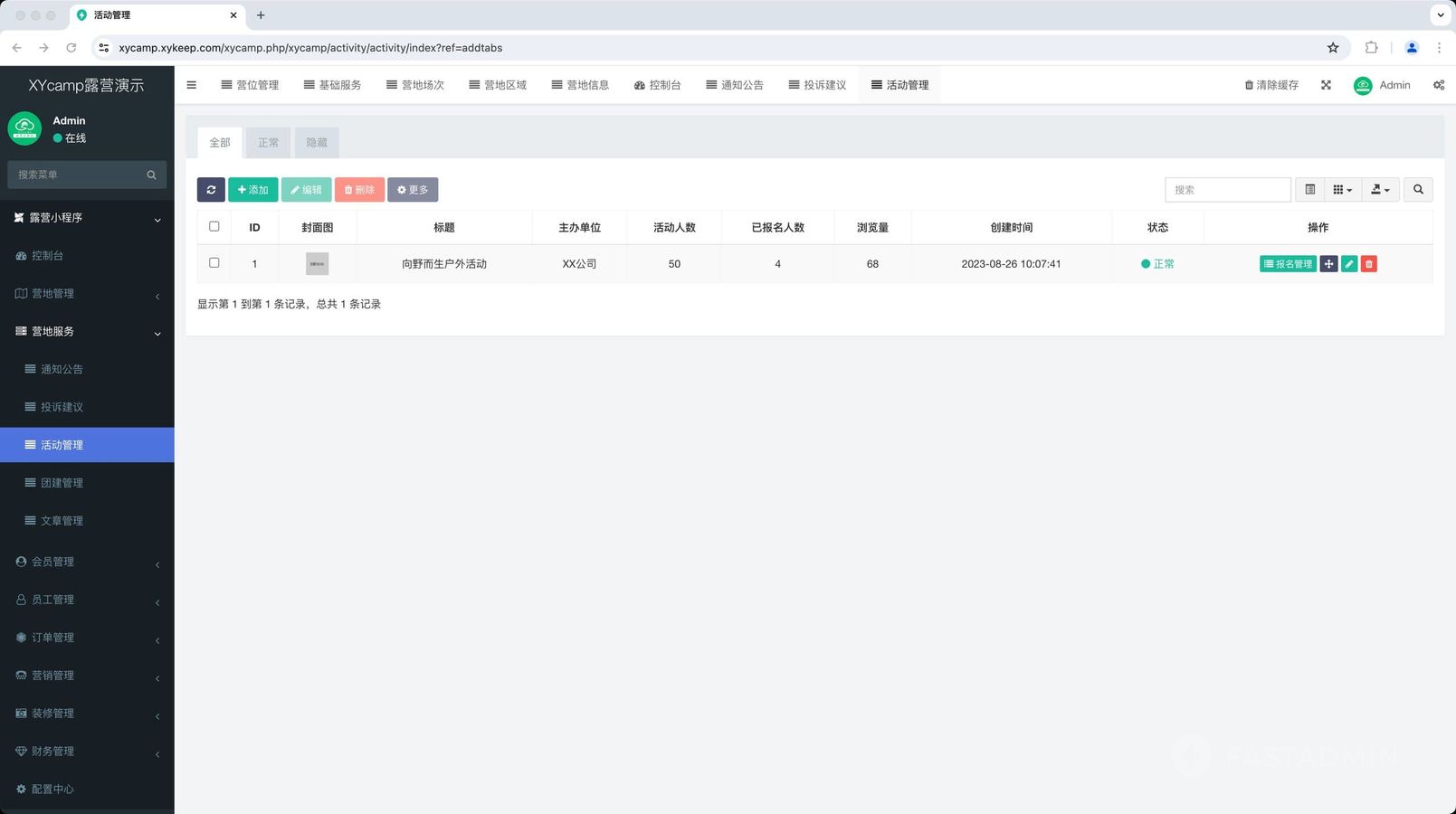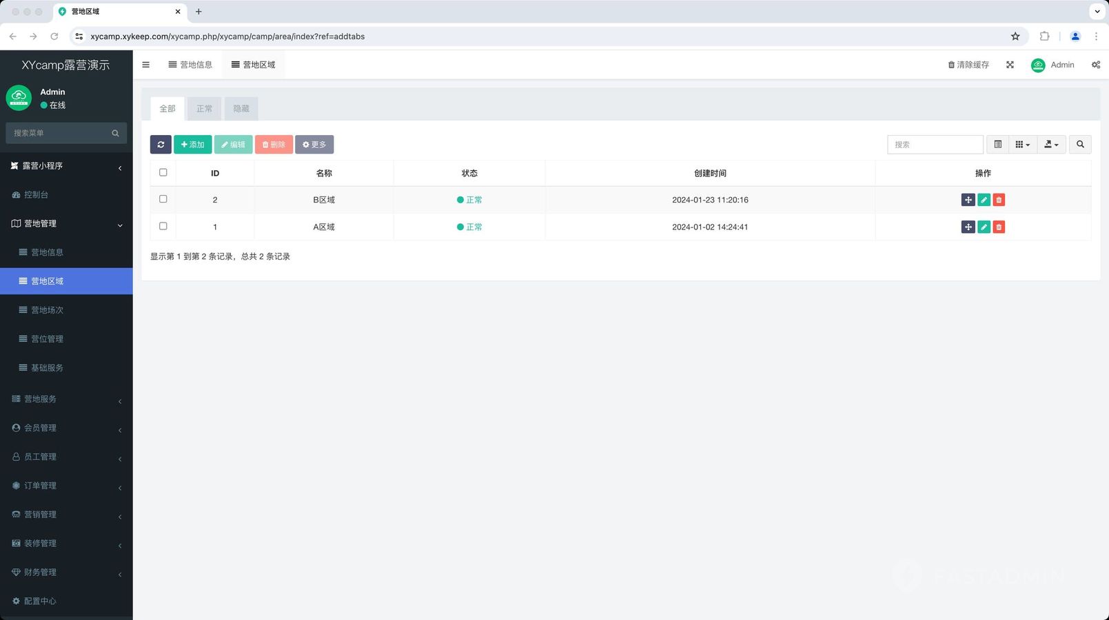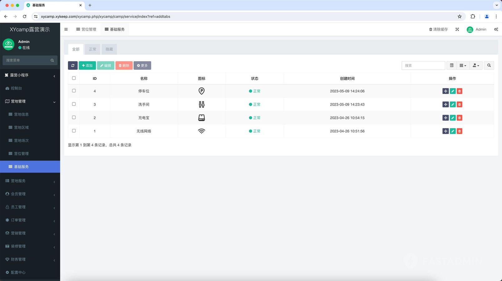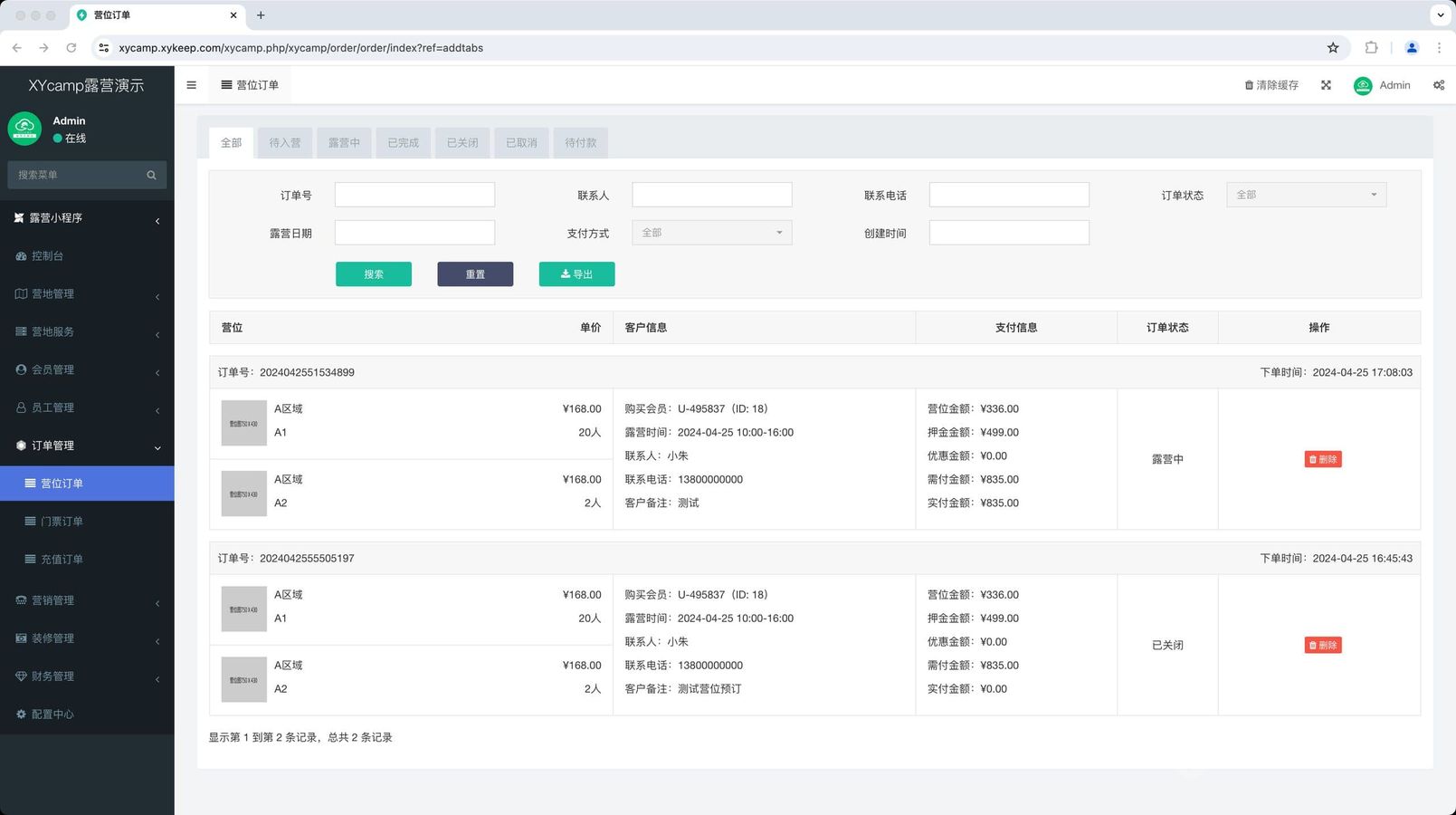 可编辑营地信息,设置营地门票价格,后台管理营地区域、场次、营位、基础服务。