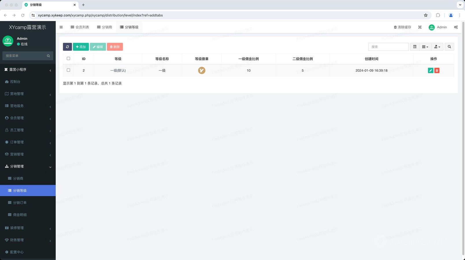 高级授权支持二级分销,可设置分销等级,可设置营位和门票订单是否参与分销。