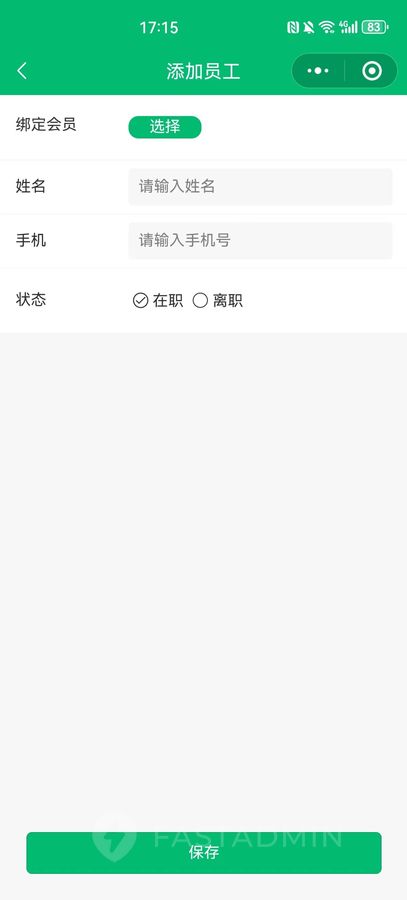 员工管理模块可以添加职员和管理两个角色员工绑定会员信息。
