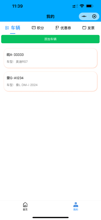 用户和后台可在线添加车辆,支持添加多辆车辆。
