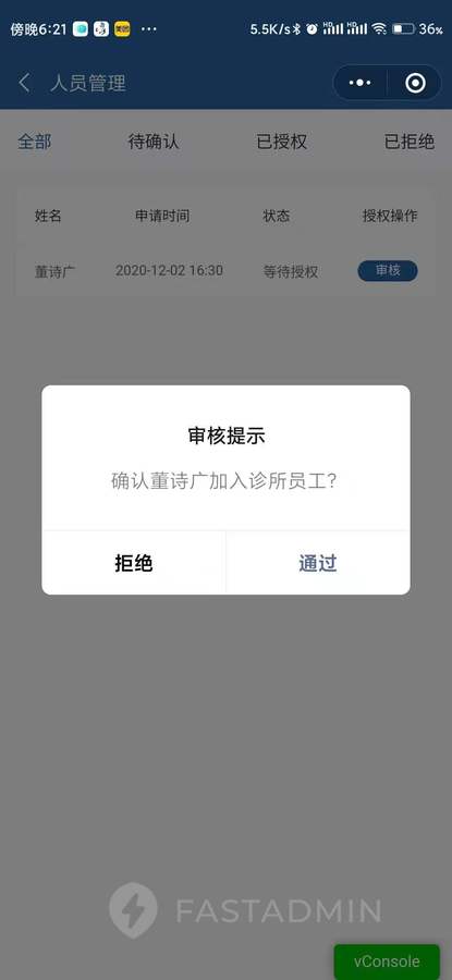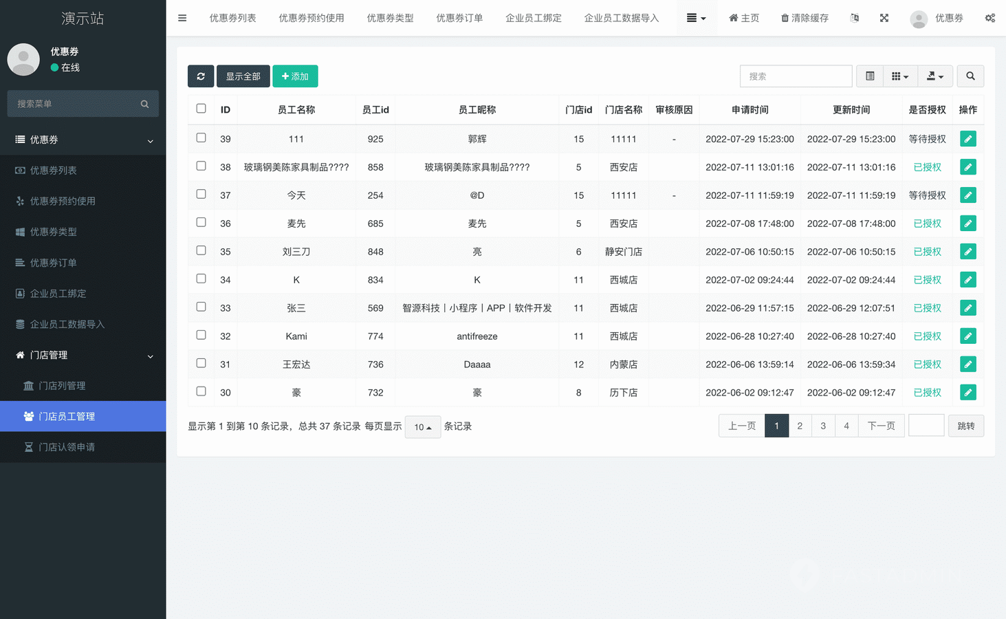 移动端可管理门店员工数据,员工加入申请和核销订单完整流程