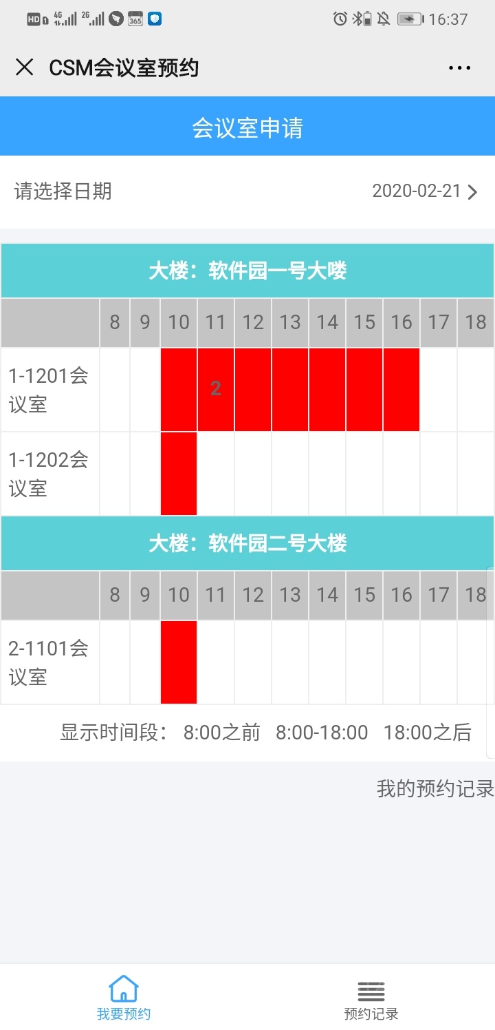 会议室门口可摆放大屏幕,投屏显示当天预约情况,方便参会人员查找