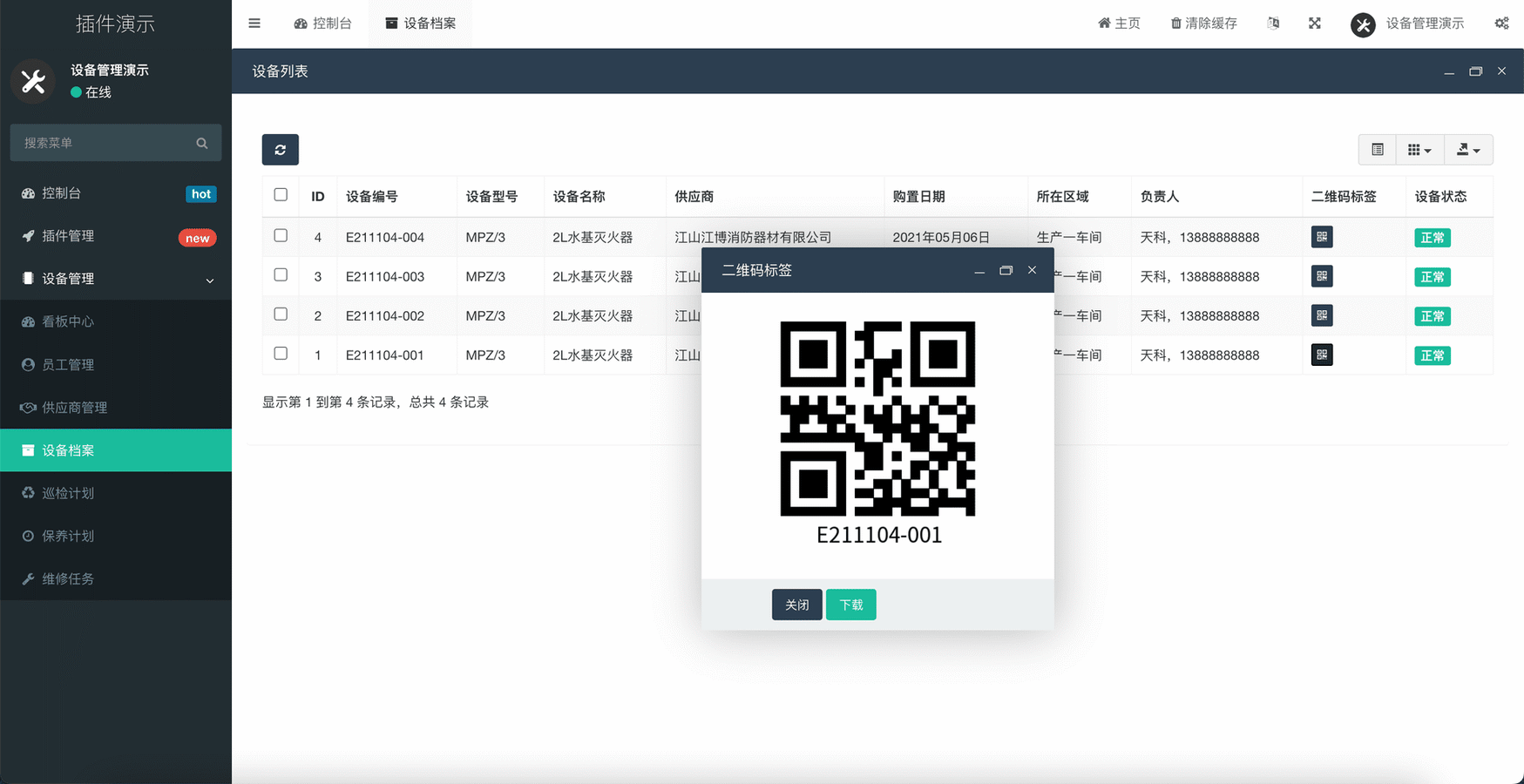 每个设备都有专属二维码,设备信息扫码即