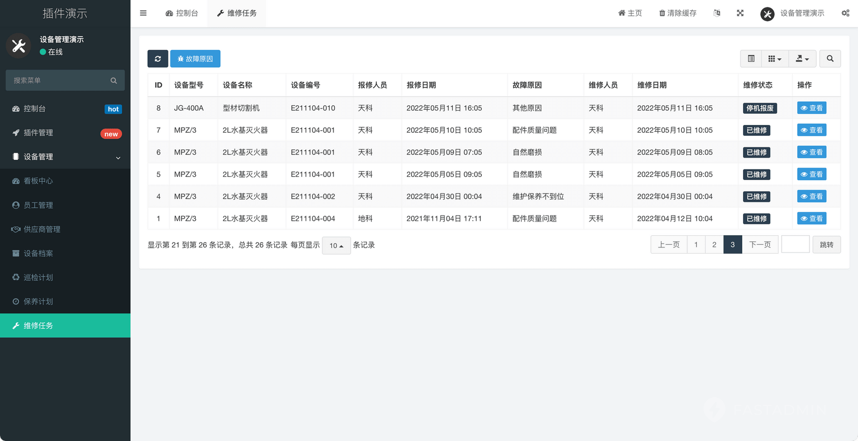支持查看所负责管理的设备状态及进度