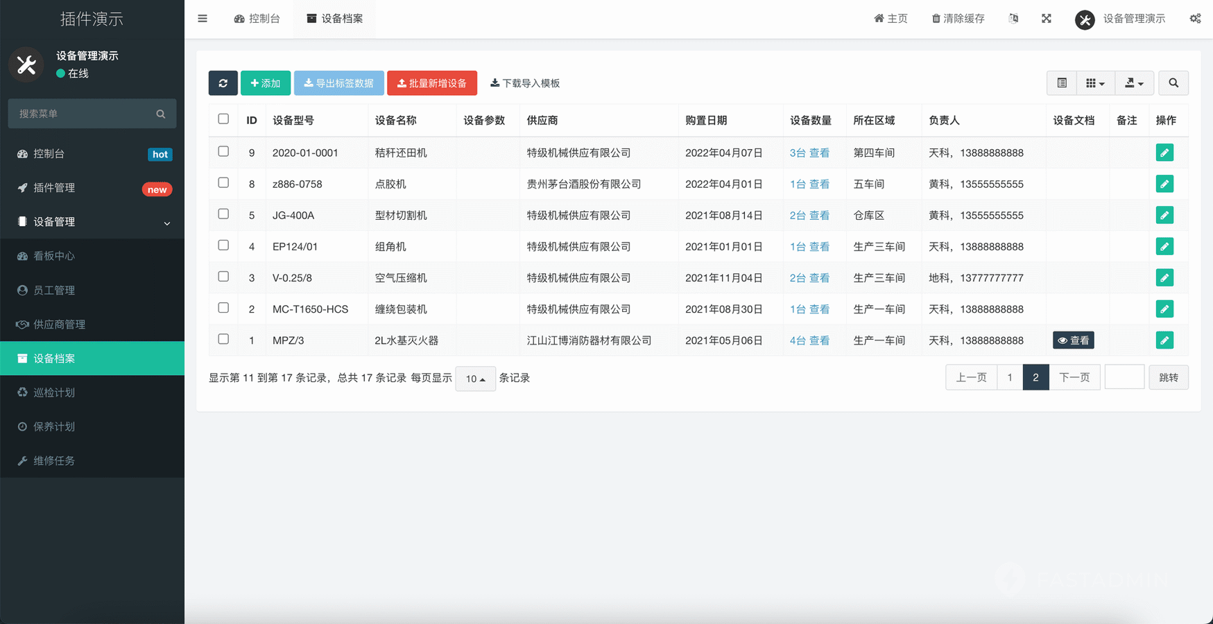 支持批量导入初期设备数据