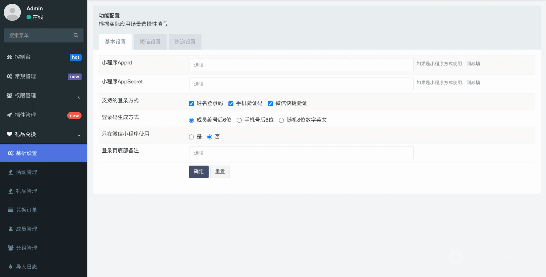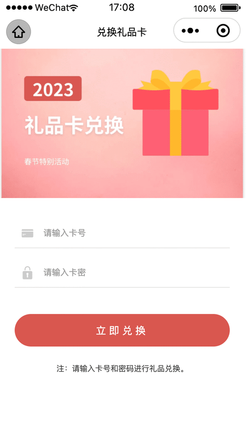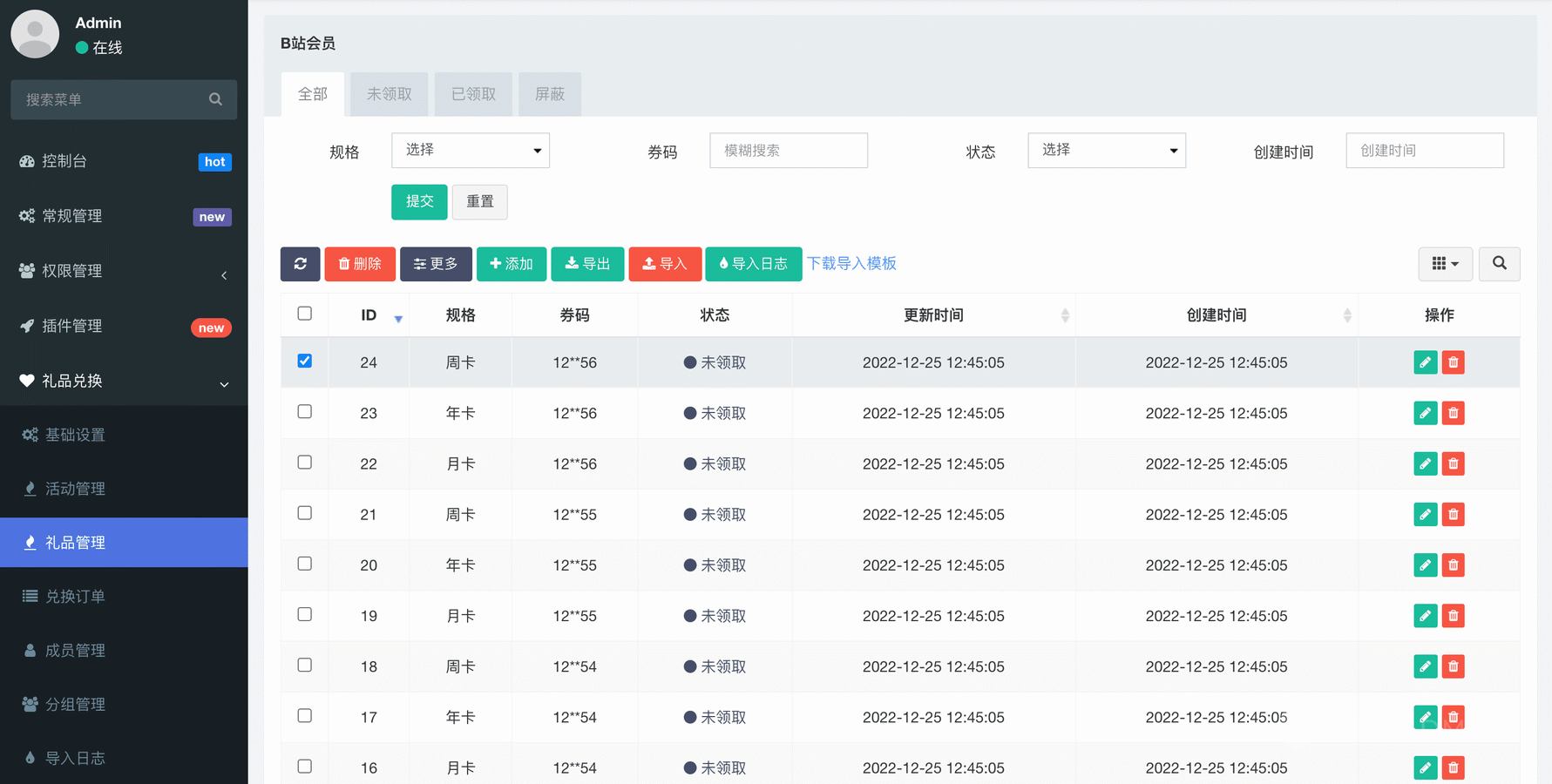高级授权批量生成卡密,用户扫码输入卡密进行礼品兑换,可以设置兑换次数