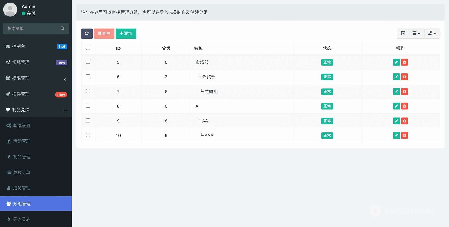 支持限定哪些分组下的人员能进行礼品兑换;每个礼品可以限定哪些活动可以领取,同时限定哪些分组下的用户能领取