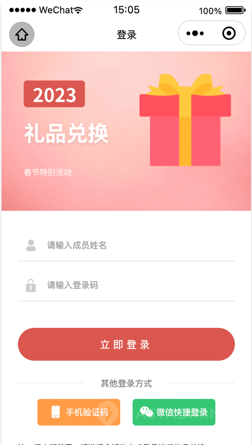 支持姓名登录码,手机验证码,微信快捷登录三种登录方式,可灵活配置
