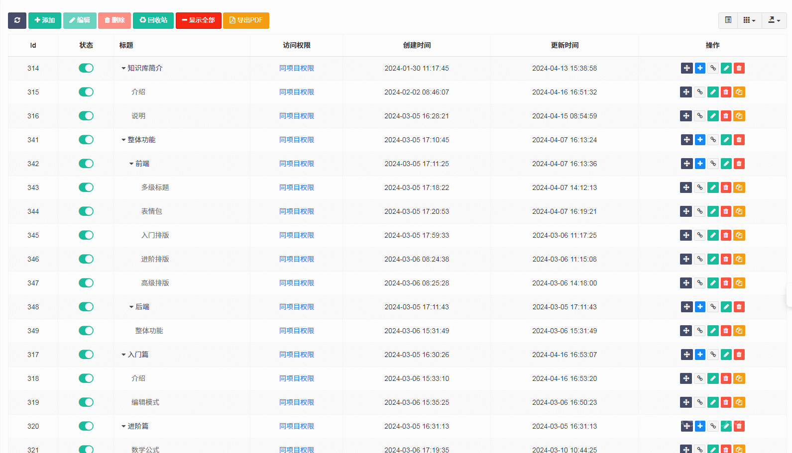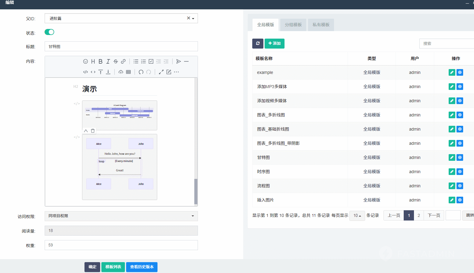 前台阅读权限设置、后台协作权限设置、操作日志记录