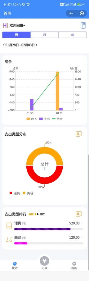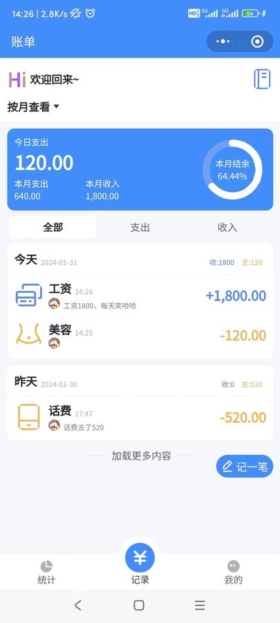 记录用户的日常记账行为,记录天数,连续记账天数,总记录笔数等