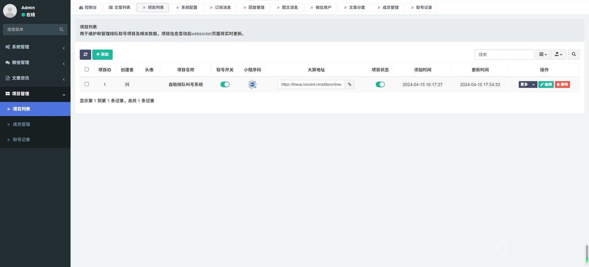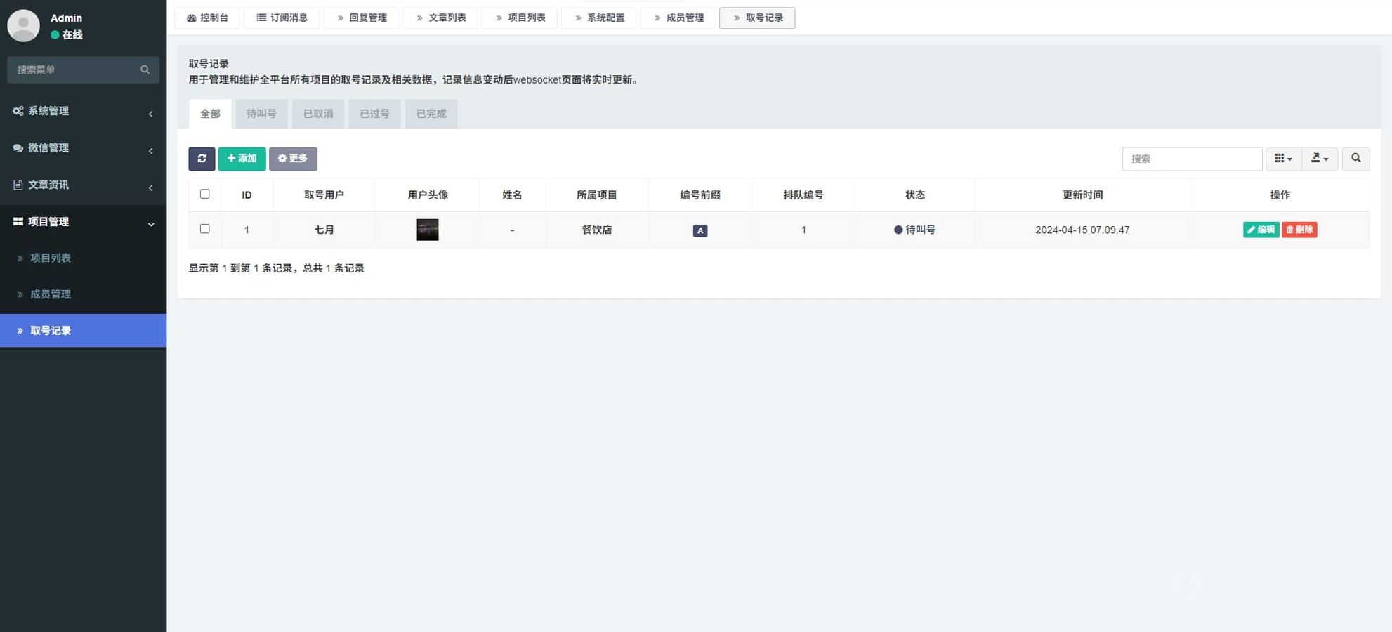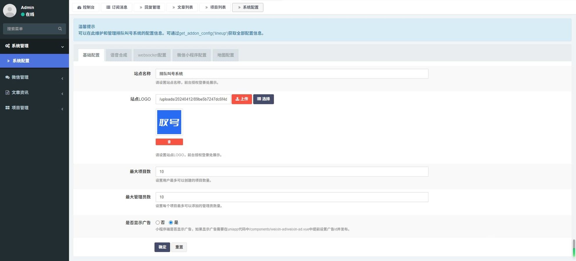 每个项目可以单独设置每日排队人数上限,超出后将不能继续取号。