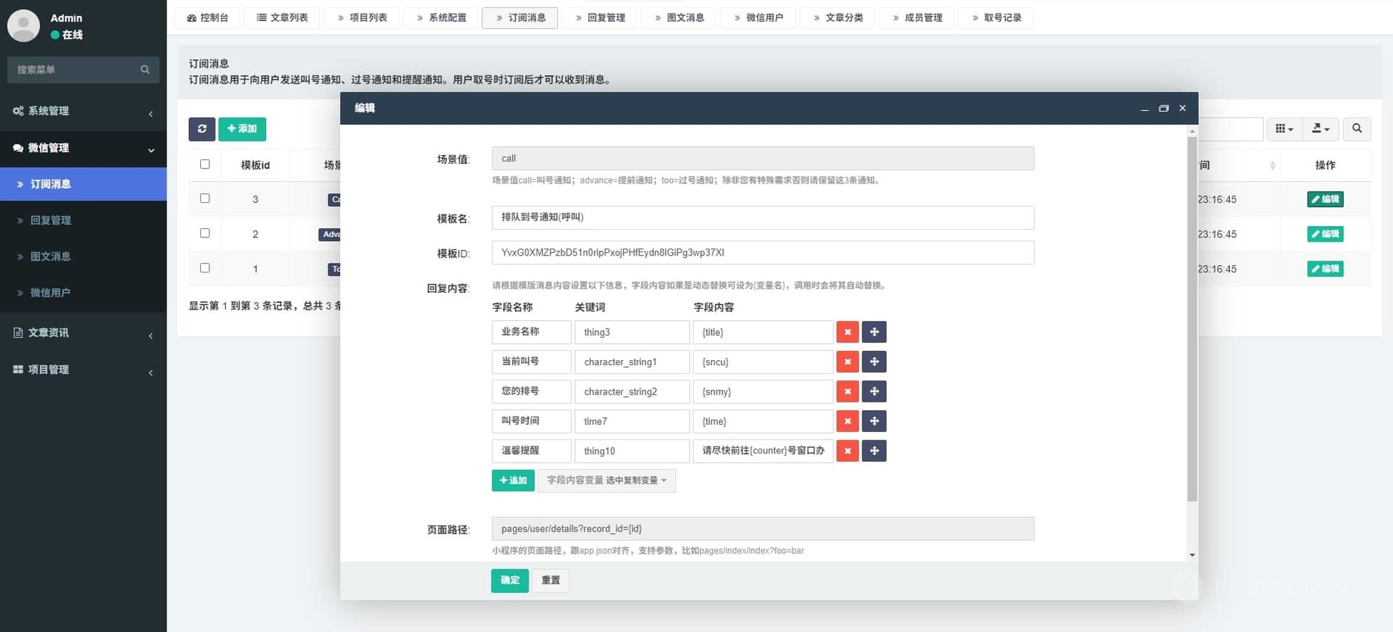 取号后,根据前方等待人数自动发送微信订阅消息提醒,即使不在场也不必担心错过叫号