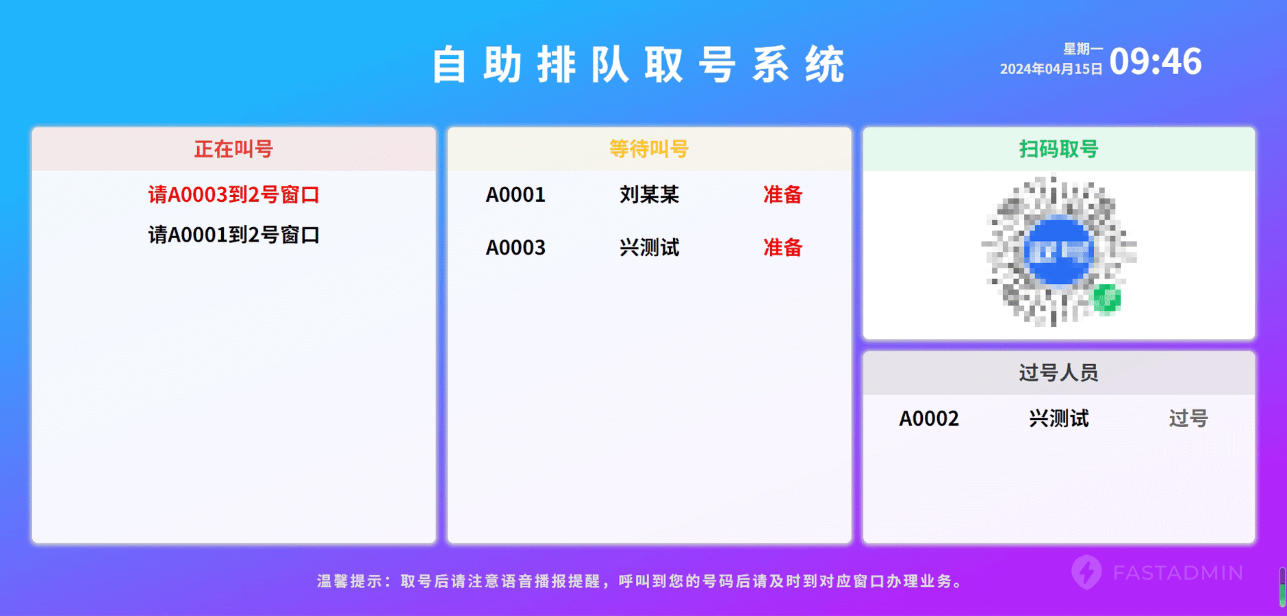 全场景排队叫号系统,语音播报大屏显示