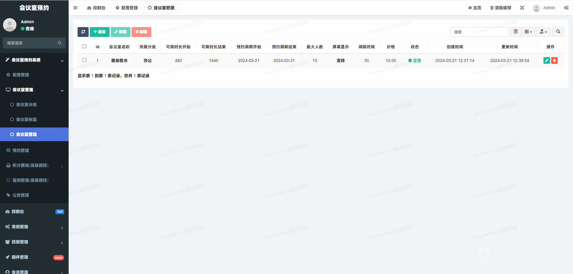 高级授权方便管理员添加新的会议室信息,更新设施与价格。