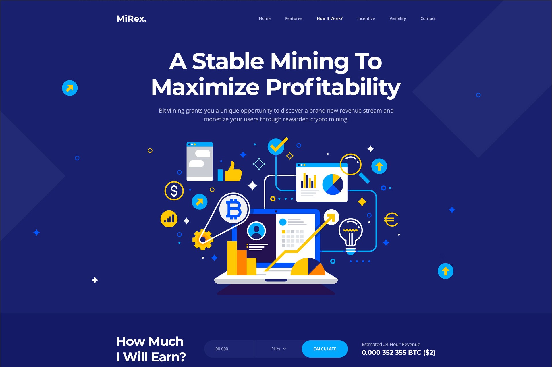 首页、矿机展示、收益计算器等页面组件可自由组合,满足不同业务需求。