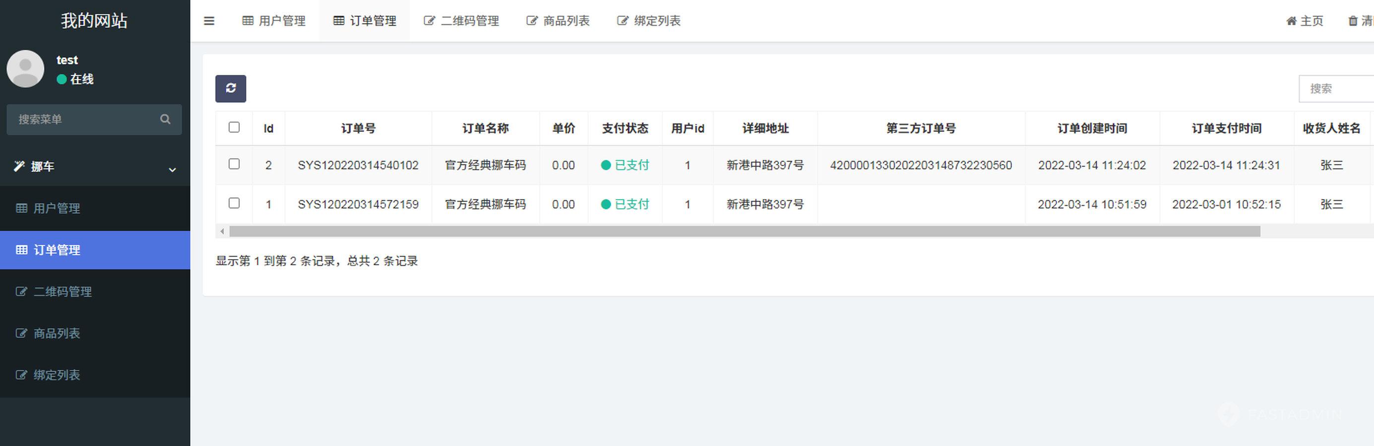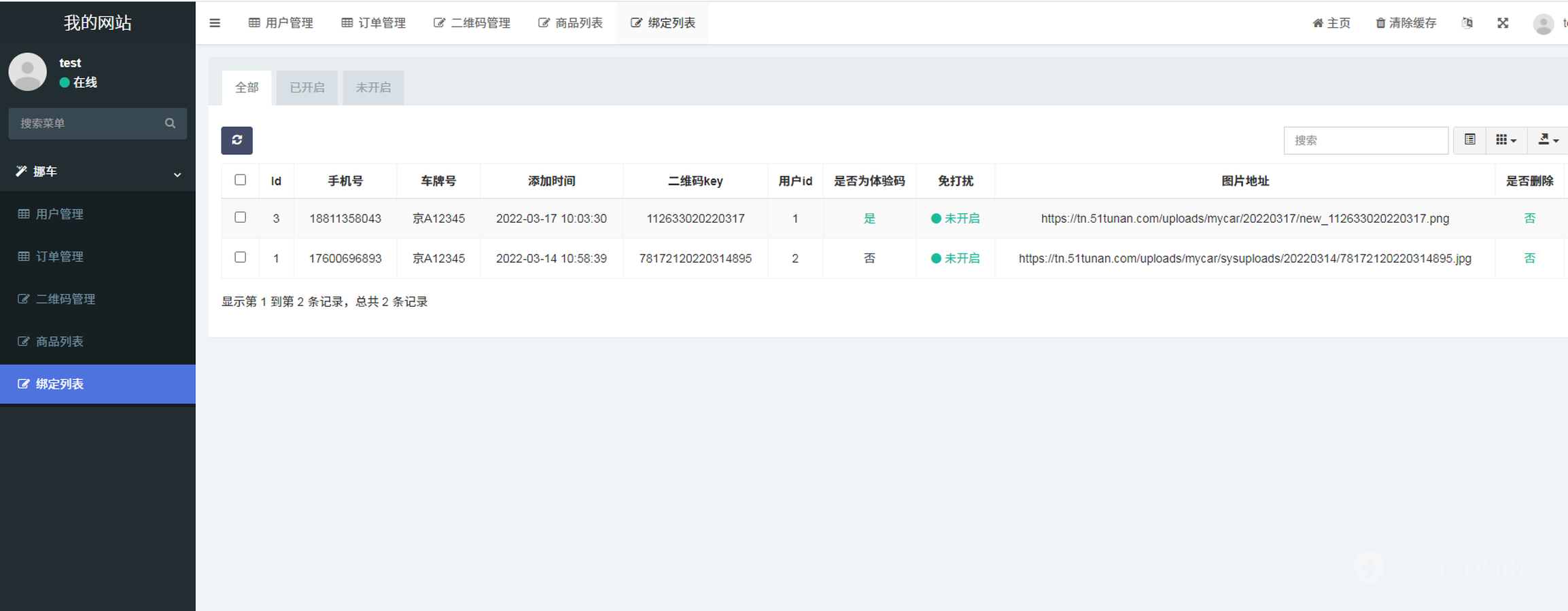后台可对用户订单,绑定用户,挪车码等进行管理