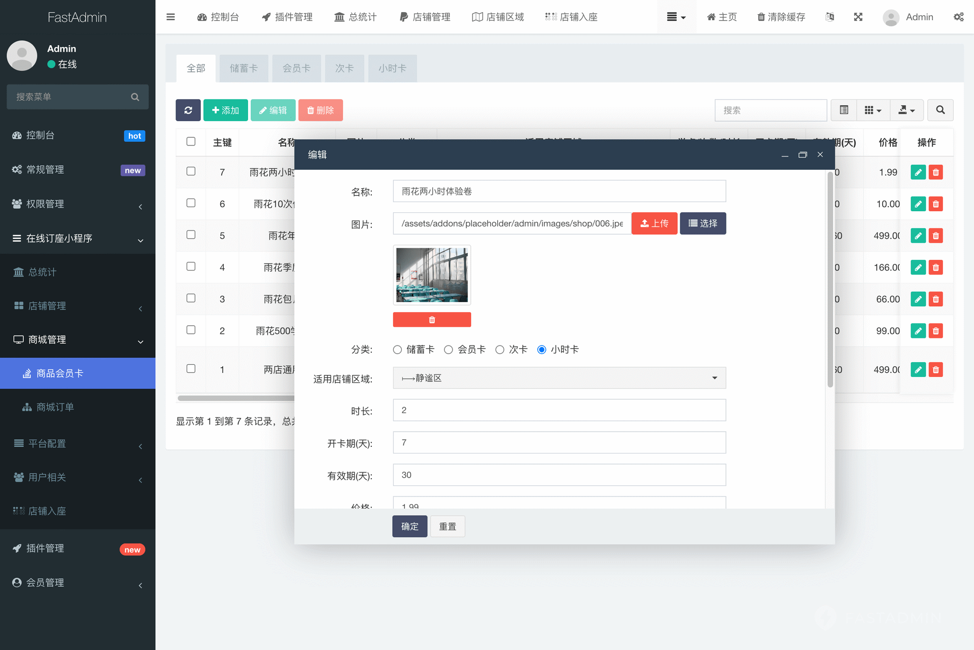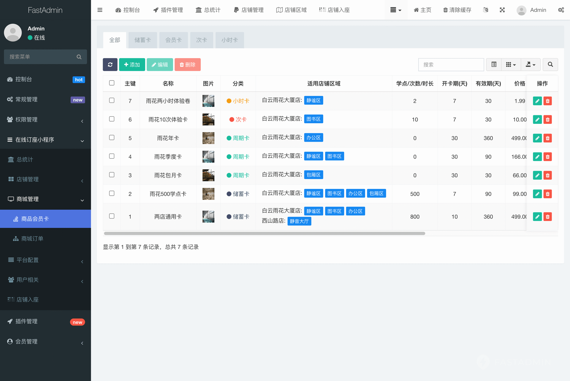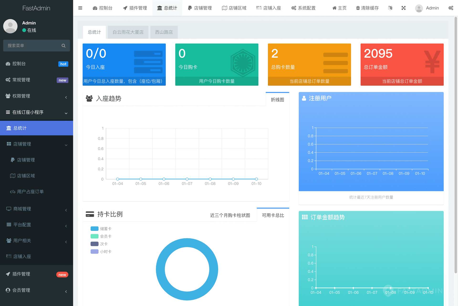 后台可统计单店铺或总店铺的入座和会员卡购买情况