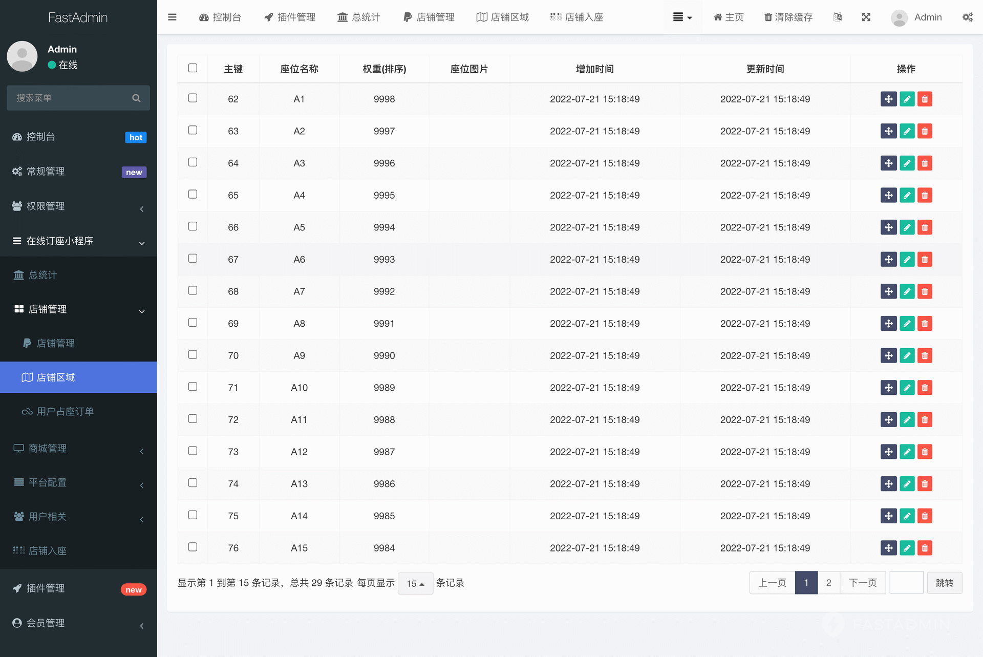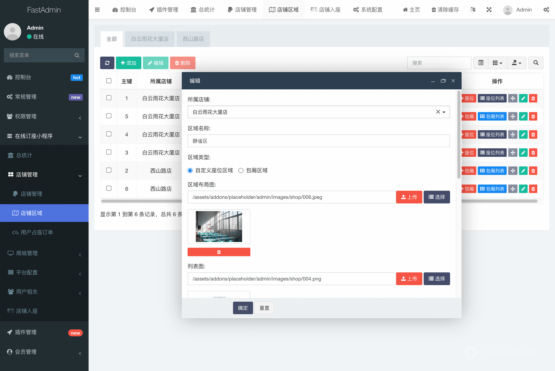 多店铺可设置多区域,多区域可设置多座位或多包厢