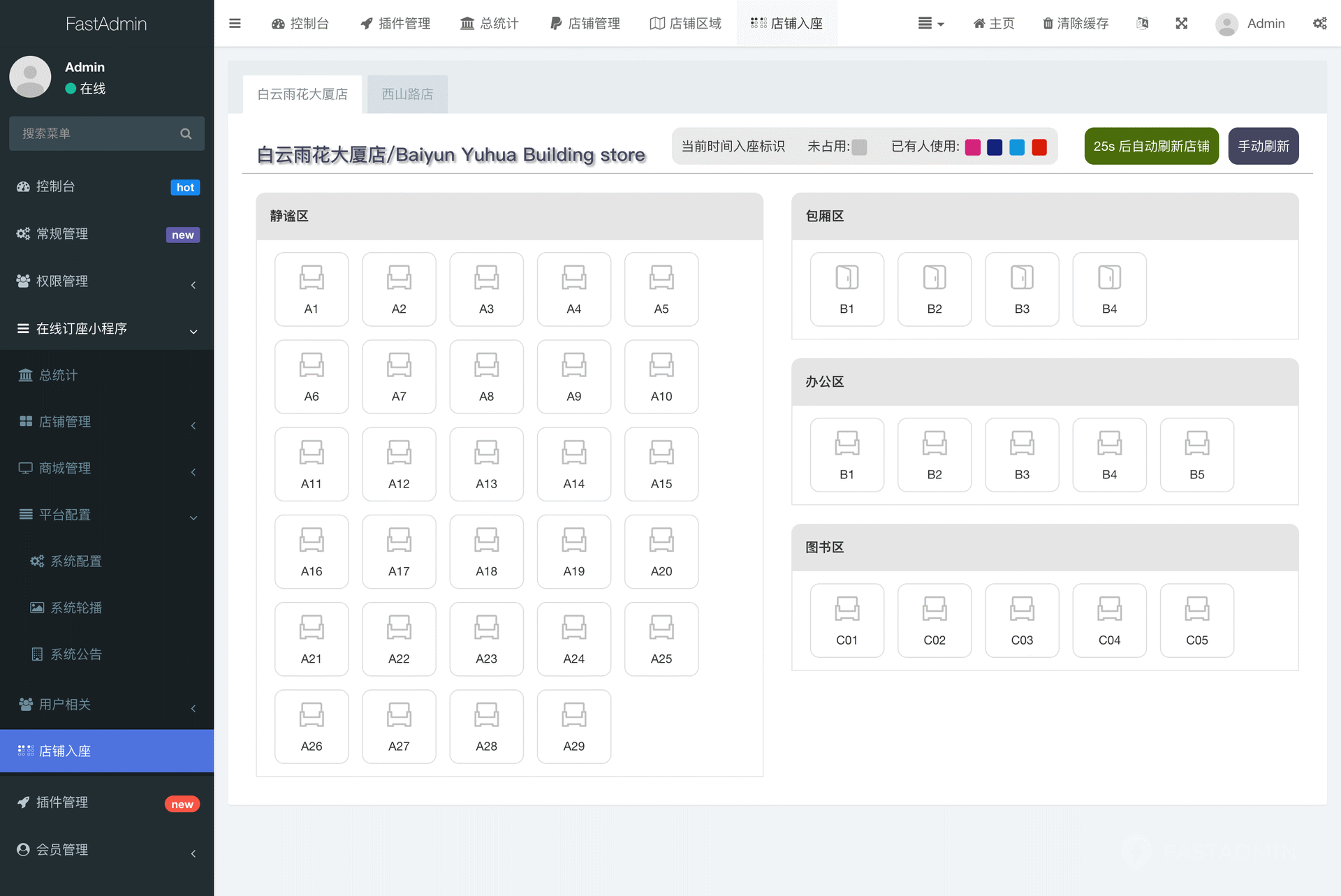 后台实时监控入座情况(多少秒后刷新)