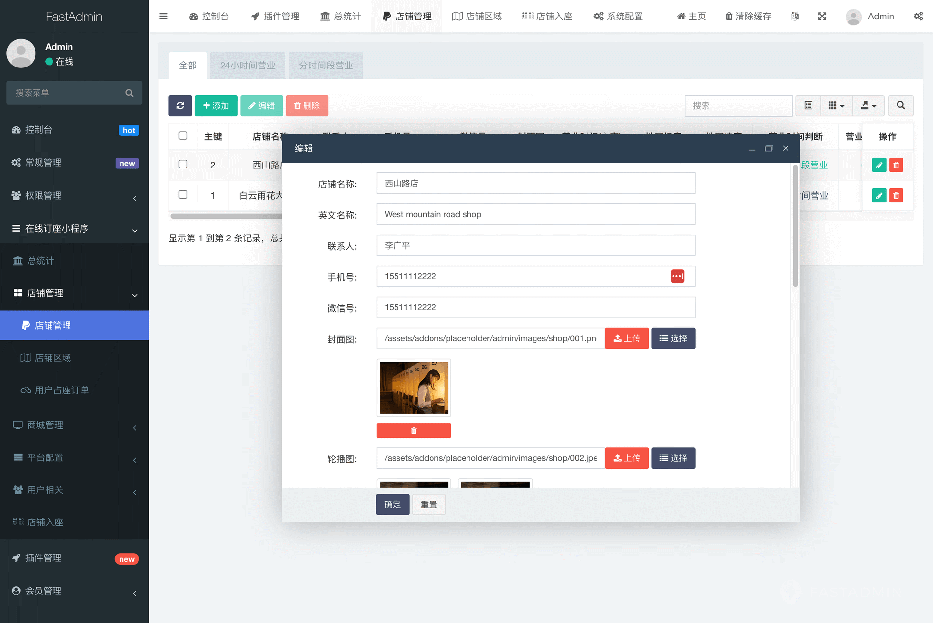 可设置24小时营业或时间段营业