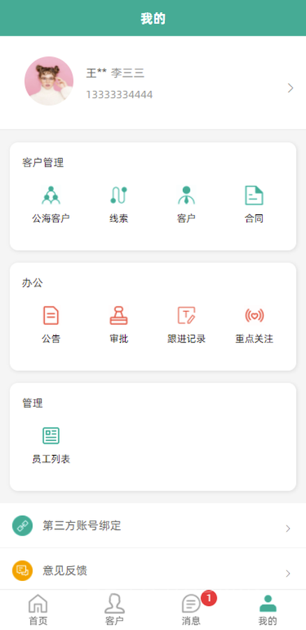 精细化客户管理,客户跟进、成交、合同,回款等全方位管理