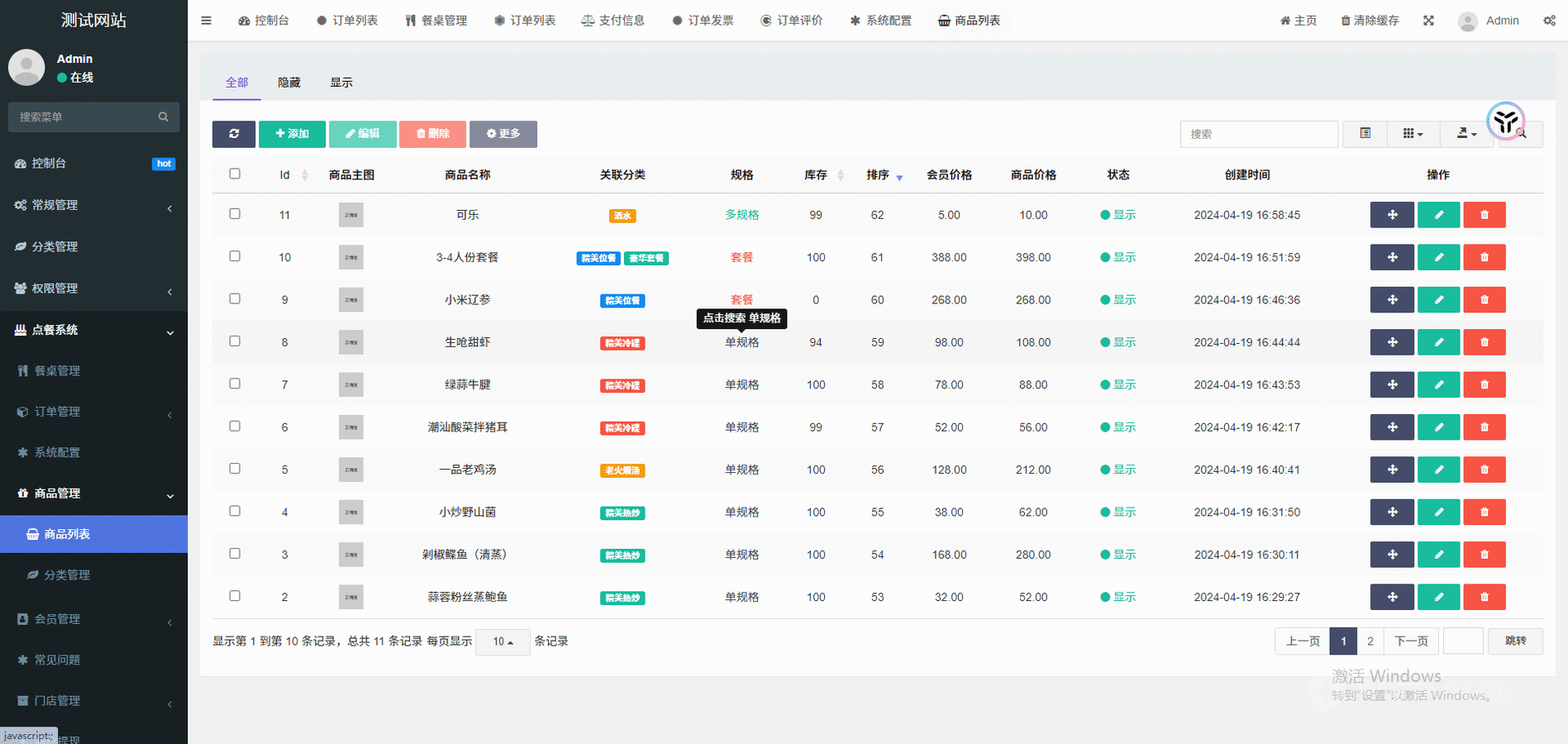 支持单规格、多规格和套餐搭配,满足餐厅多样化的菜品设置需求。