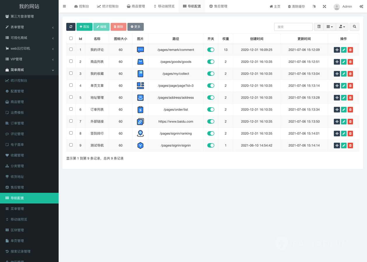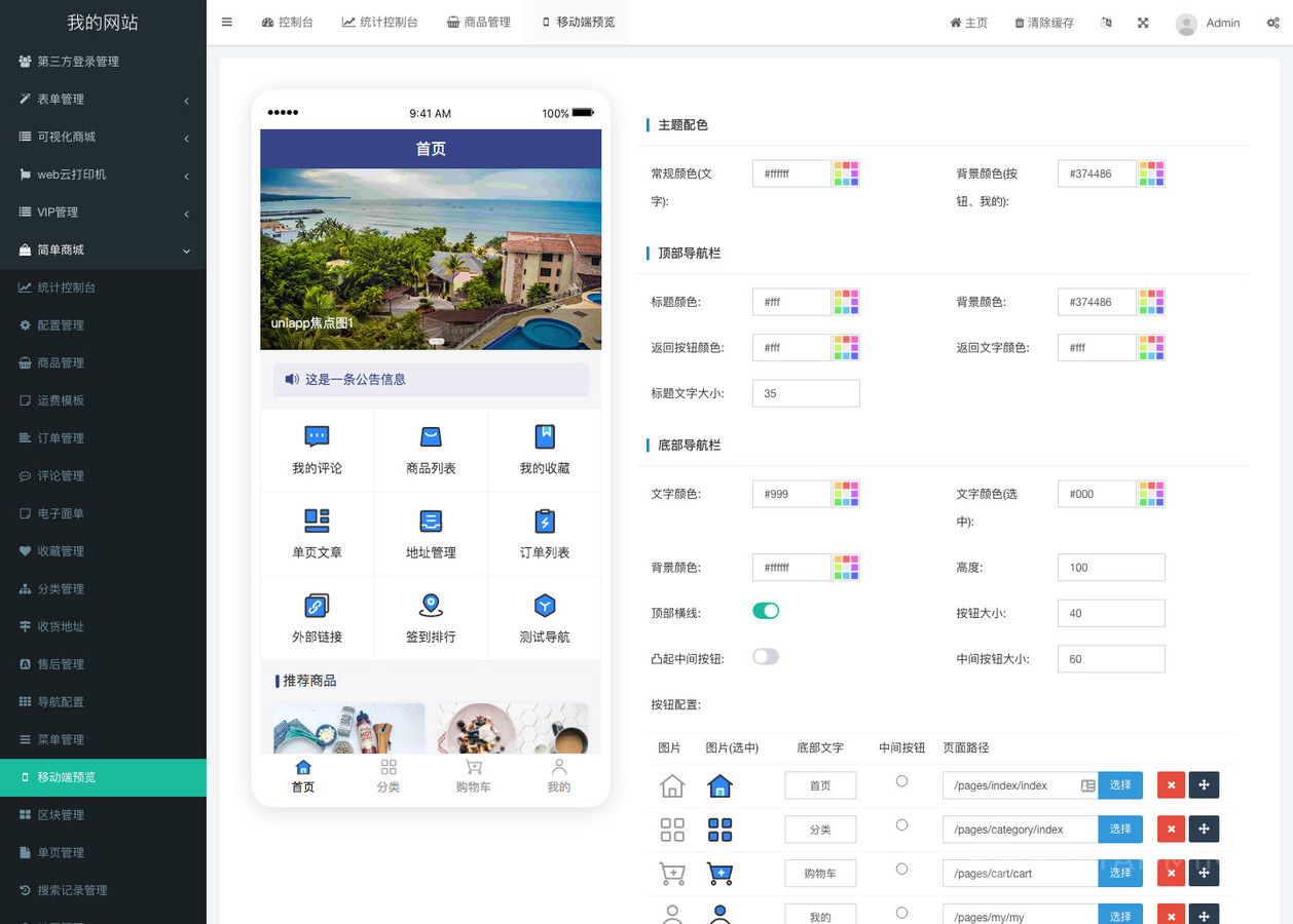 PC版、UniAPP版均支持后台自定义导航功能