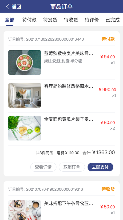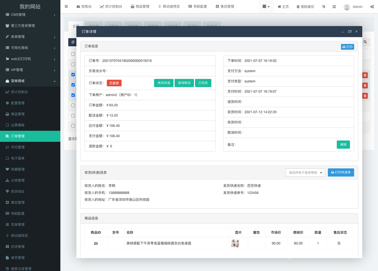 完善的退换货售后功能,支持对订单进行退换货售后