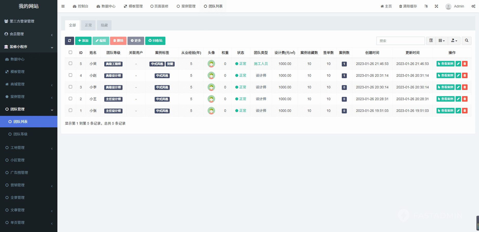 有首页,案例预约,工地预约,设计师预约 等表单,让获客不再难,后台查看数据一目 了然。