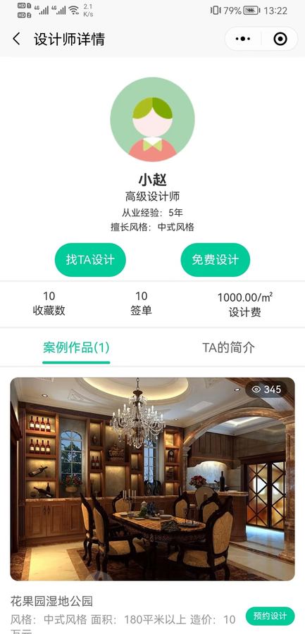 设计师/工程师简介,预约,案例作品关联工地关联,一键报价