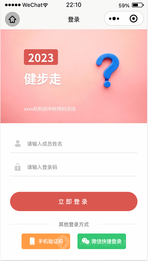 支持姓名登录码,手机验证码,微信快捷登录三种登录方式,可灵活配置
