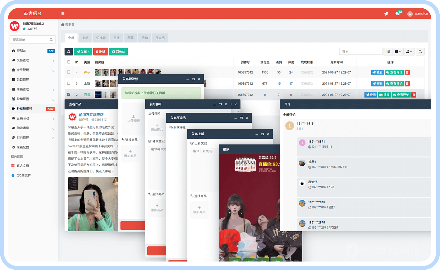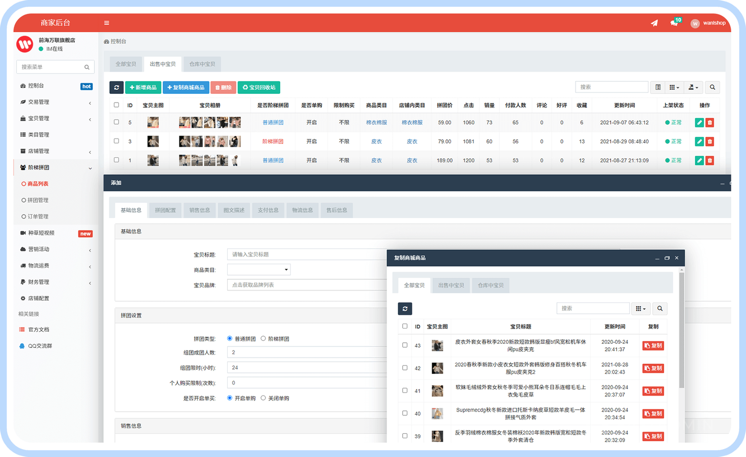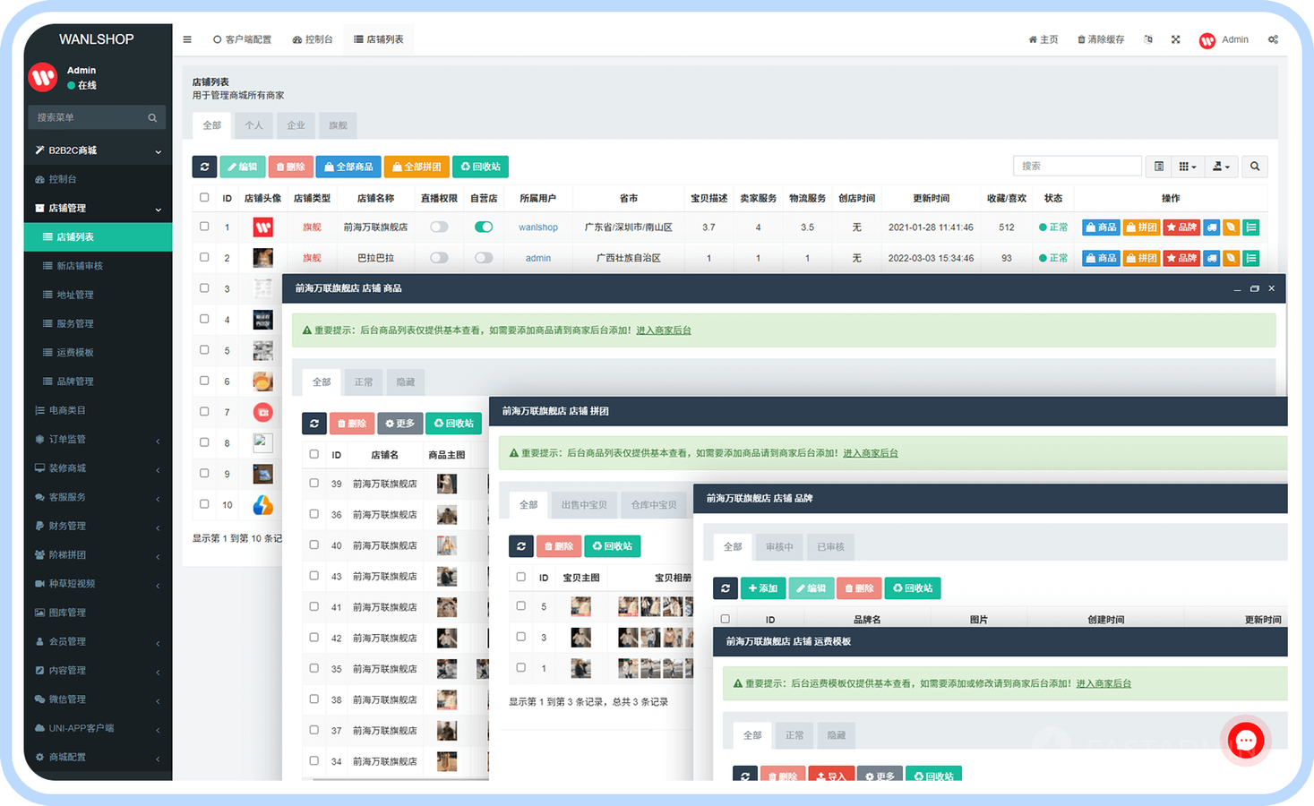 一款运营级电商平台,她拥有店铺入驻B2B2C、自营B2C的功能,还内置了直播社区种草IM即时通讯多类型优惠券等功能...