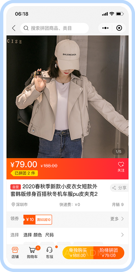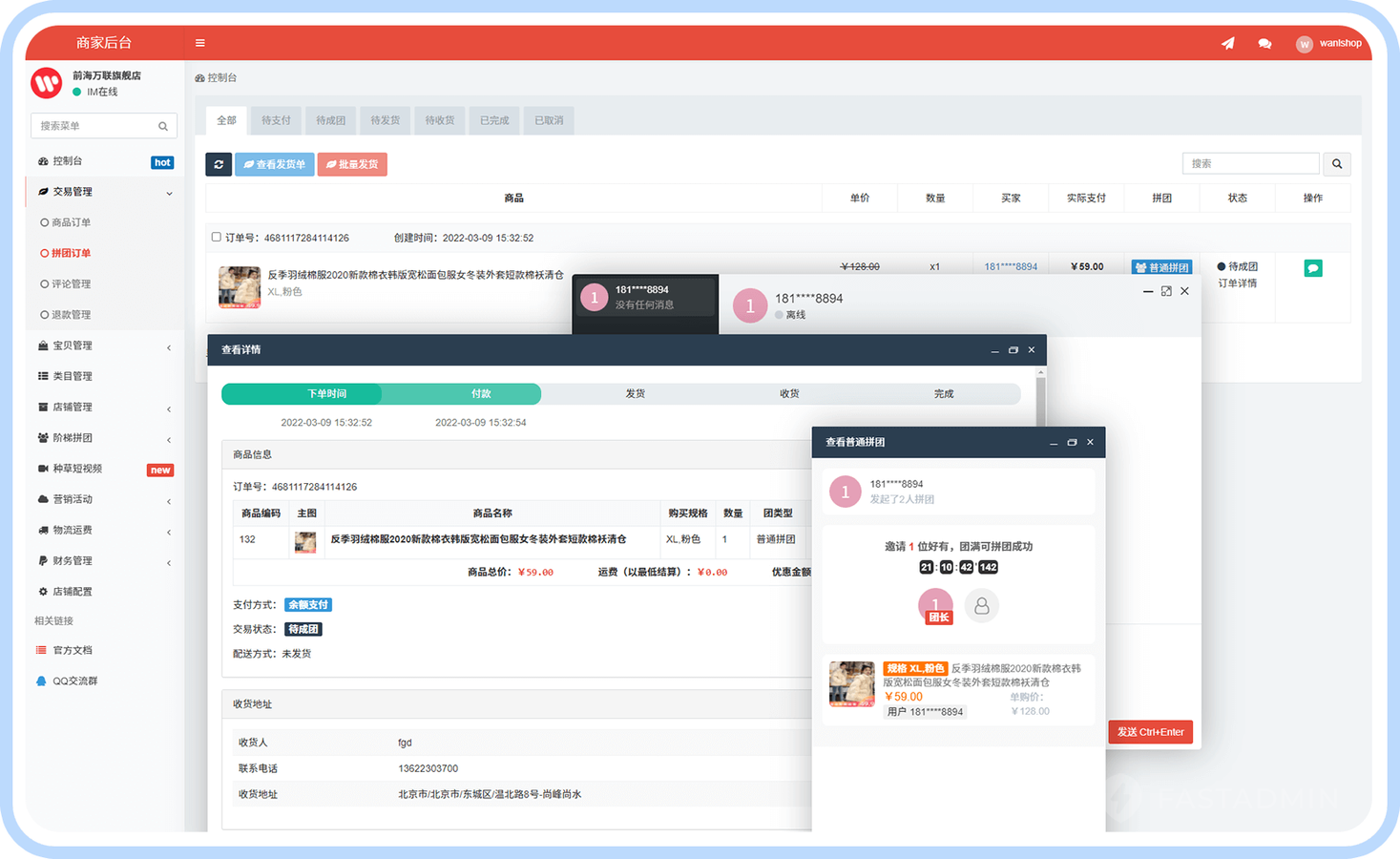 内置强大IM可以和商家第一时间取得联系,完善电商生态闭环