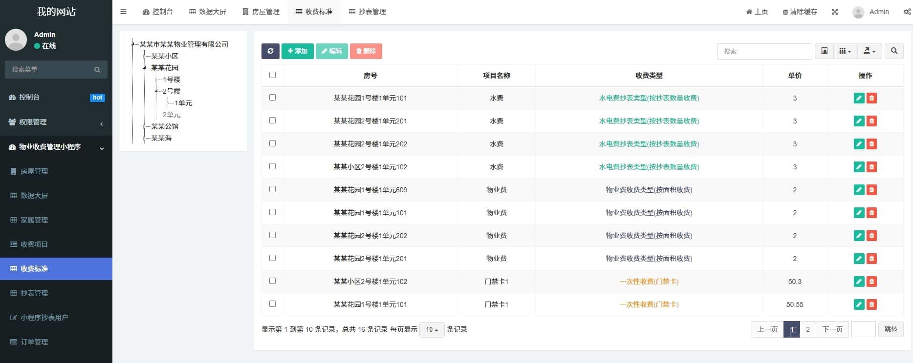 支持按面积收费(物业费)、抄表数目收费(抄表式水电费)、日期段收费(停车费)、一次性收费(门禁卡,读卡式水表等)4种收费模式。