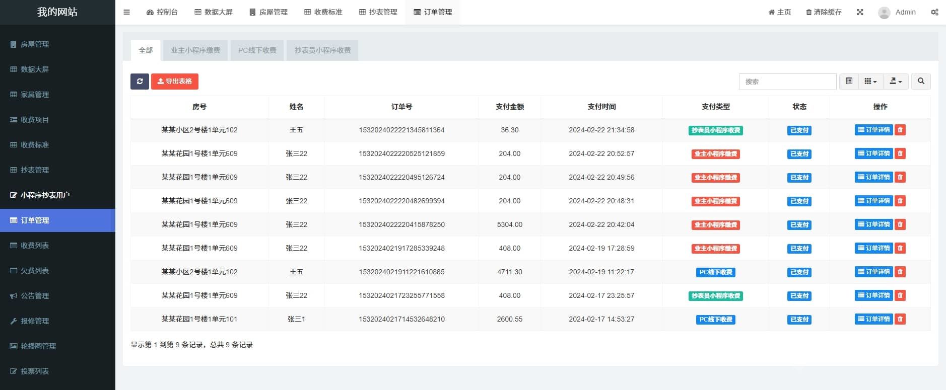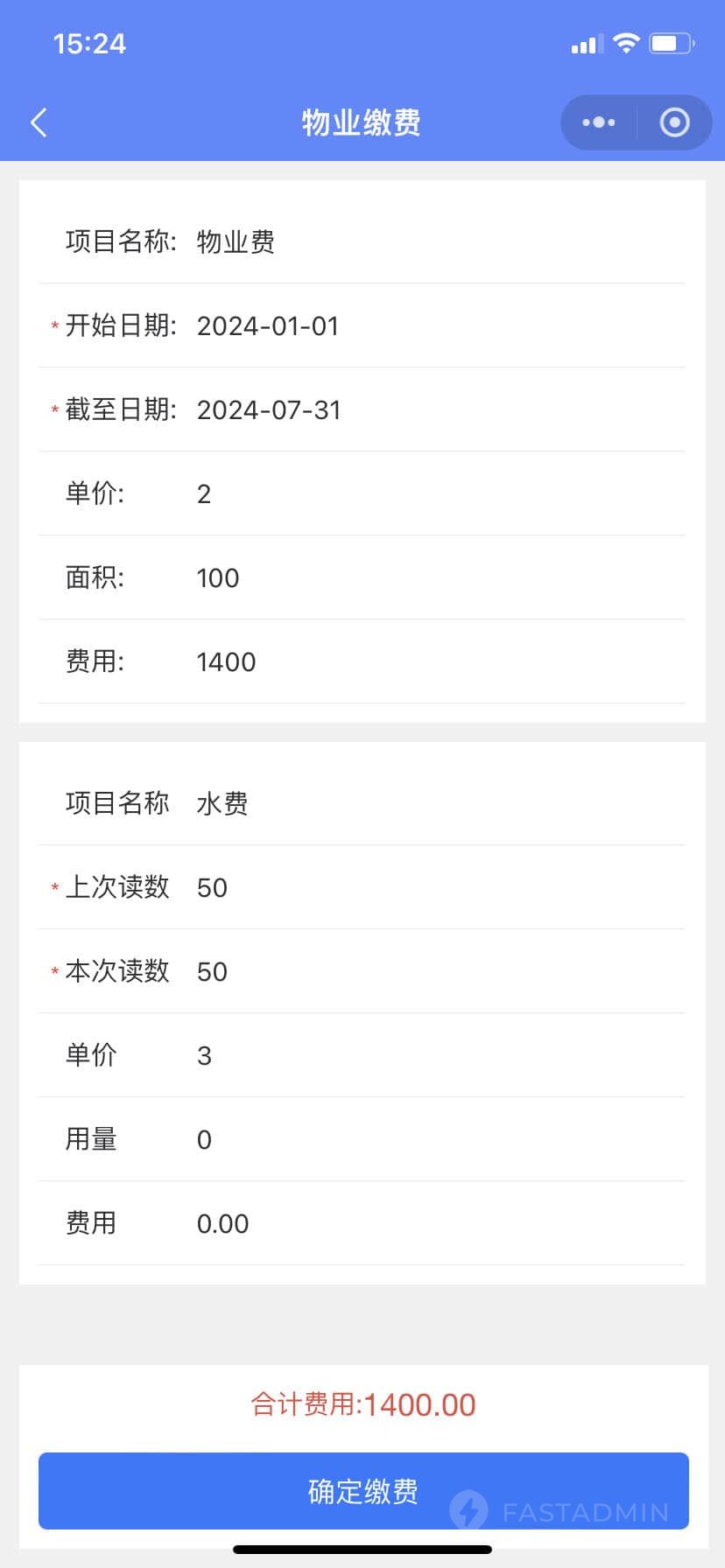 支持后台PC收费、 业主通过小程序自助缴费 、抄表员通过小程序收费3种方式。