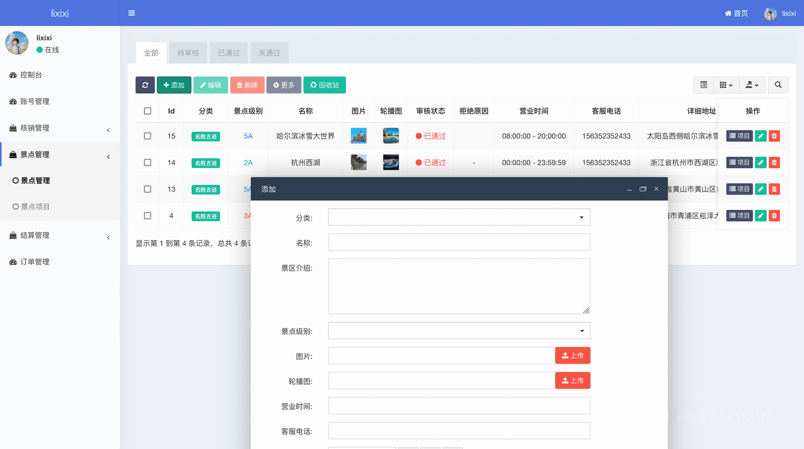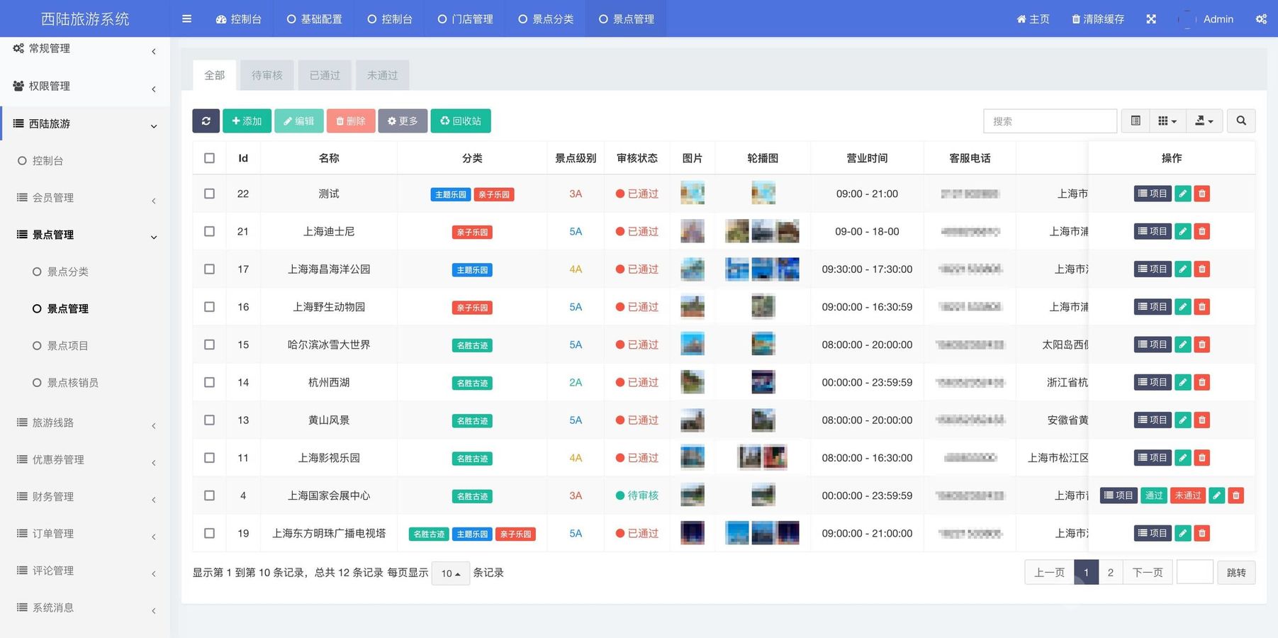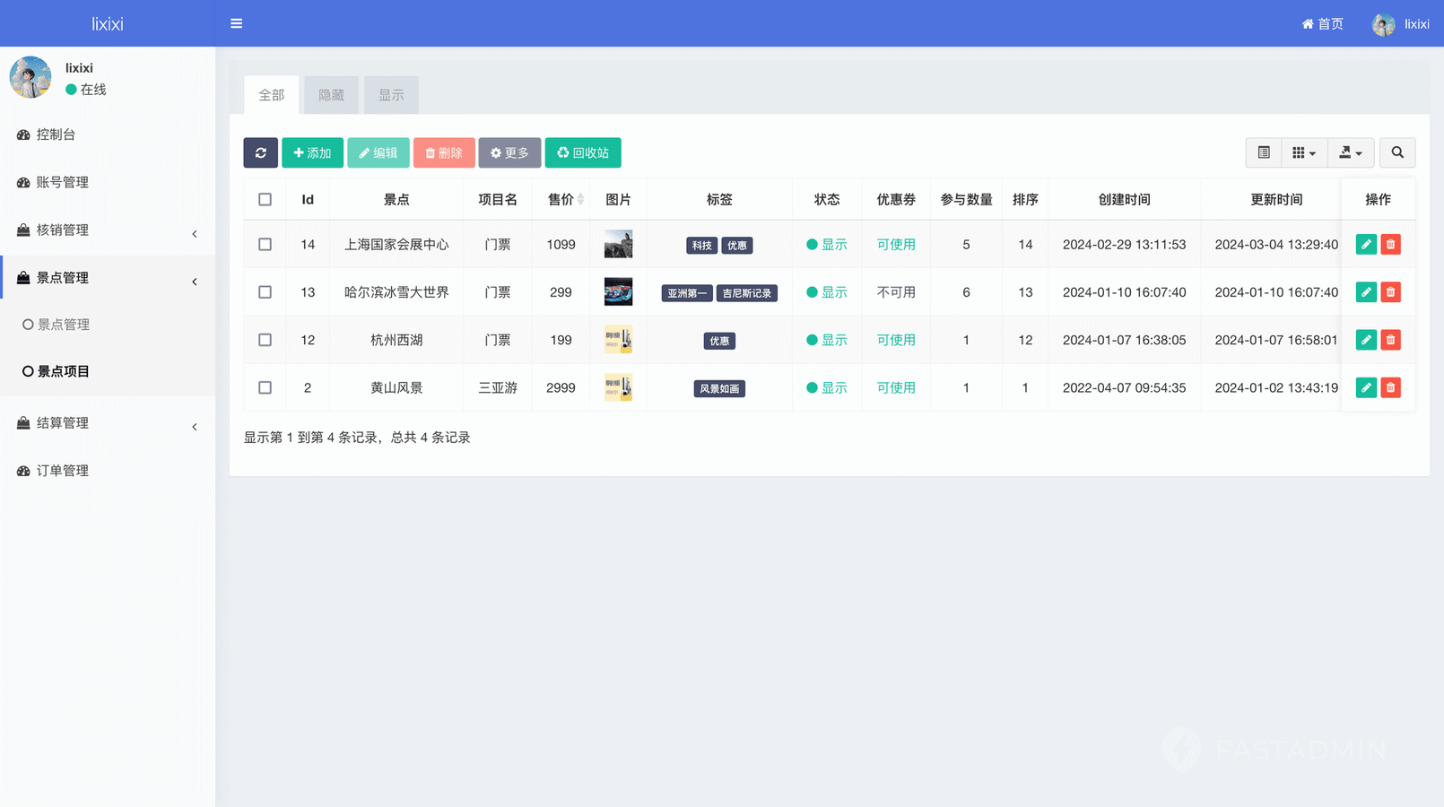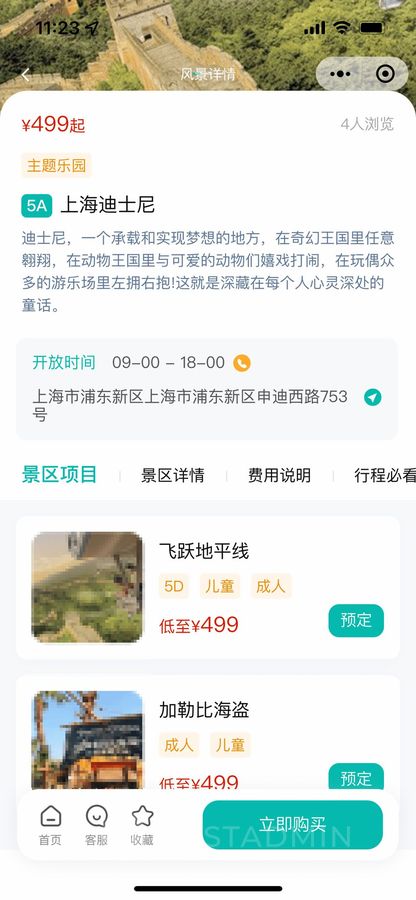 景点机构发布景点项目,比如门票、项目票,支持在线购票