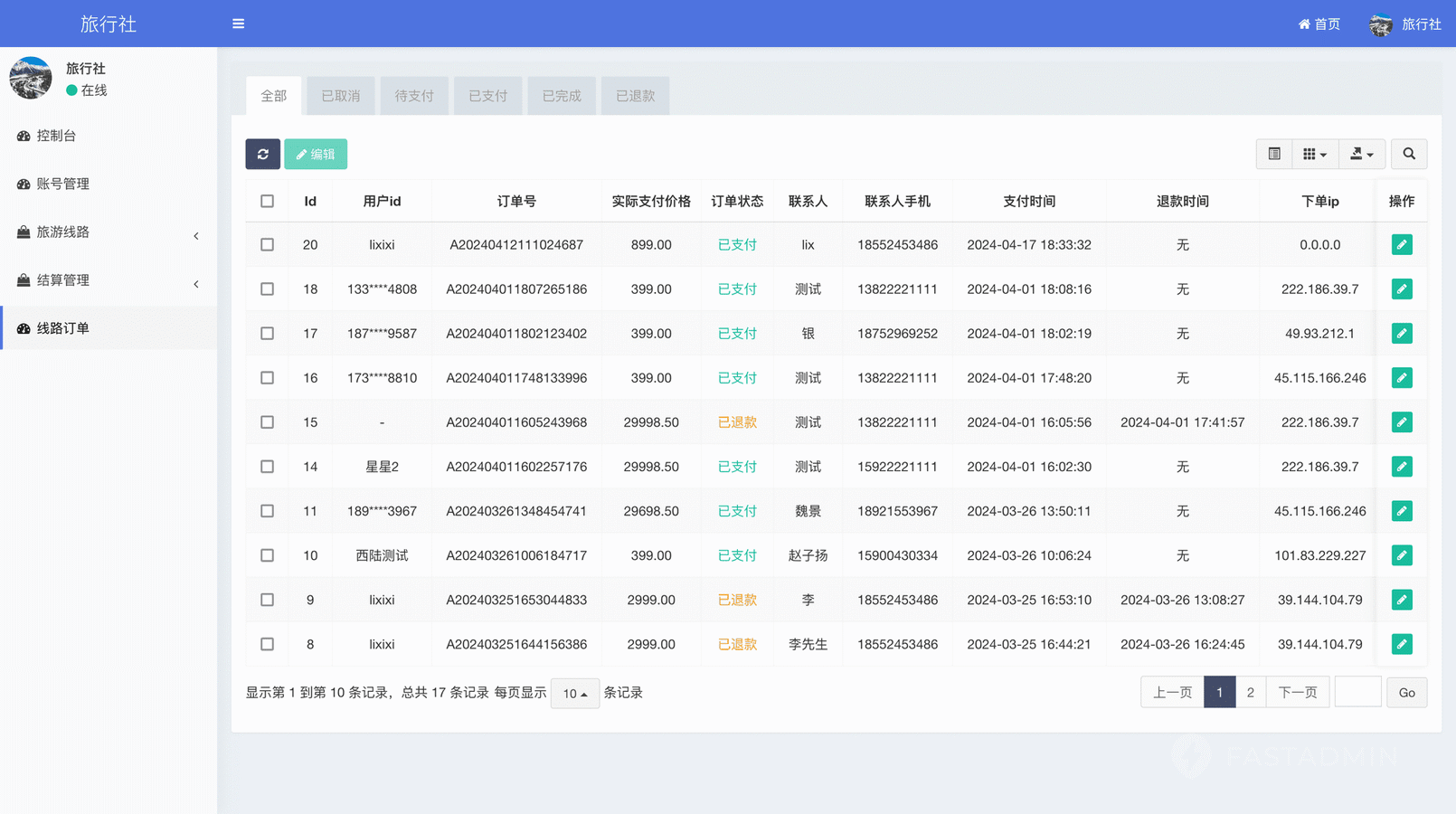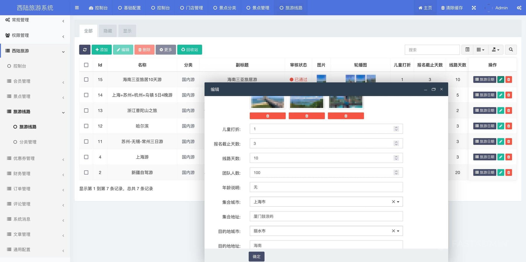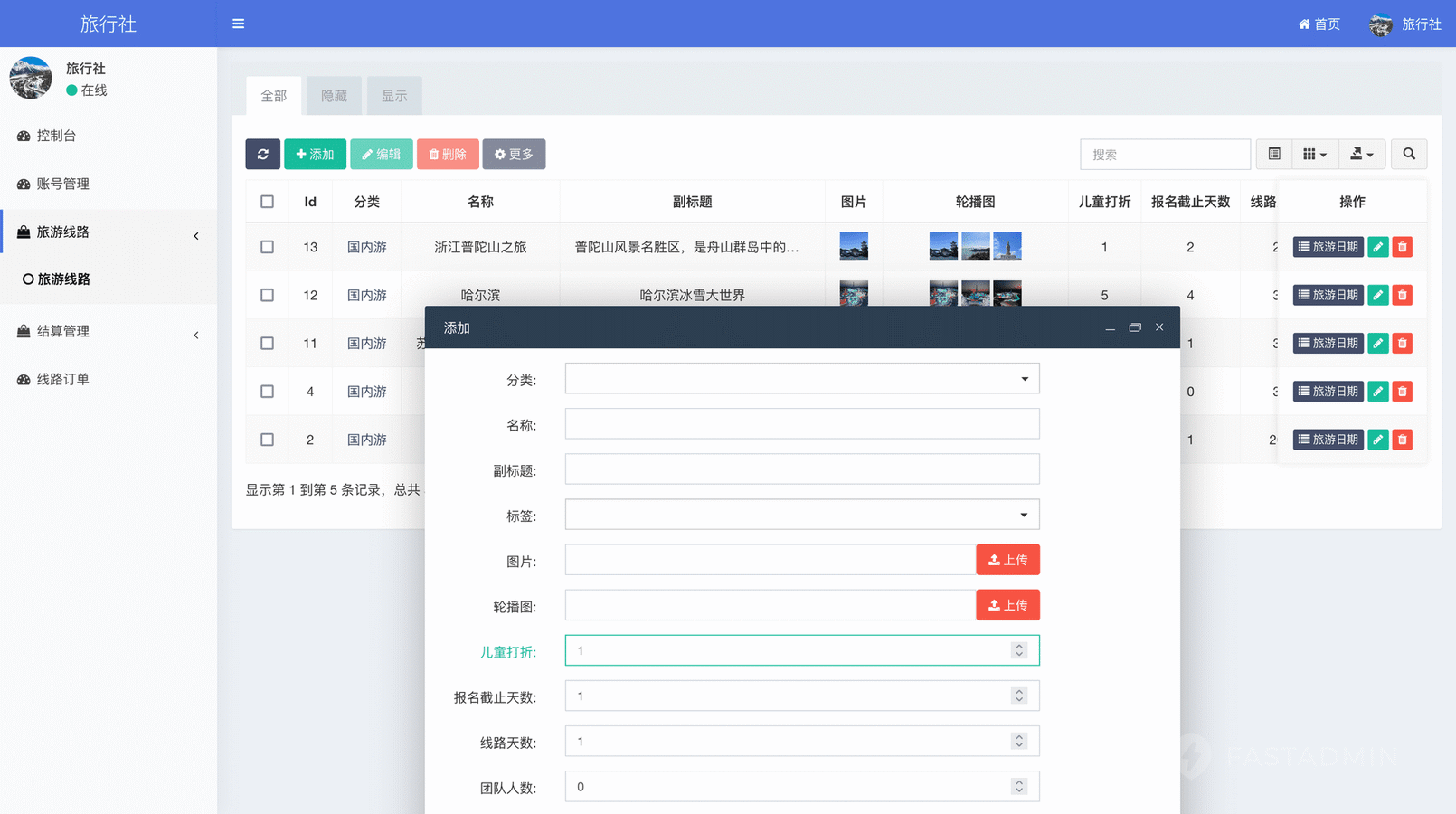 旅游机构发布全国线路,线路可以设置多个出行日期