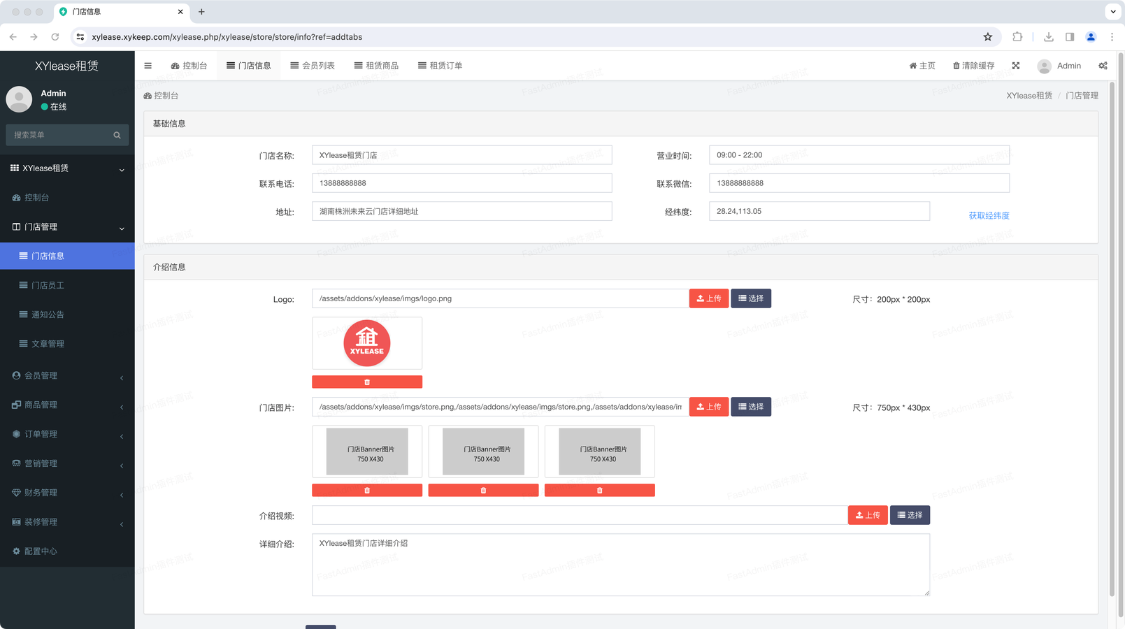 可编辑门店基础信息,发布通知公告,管理员工权限信息。