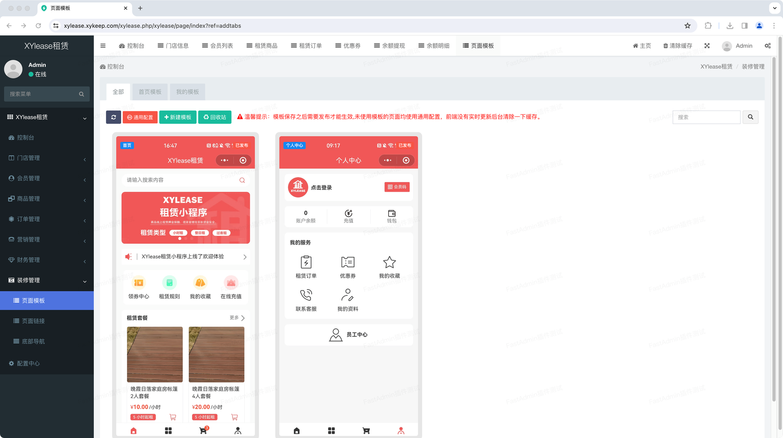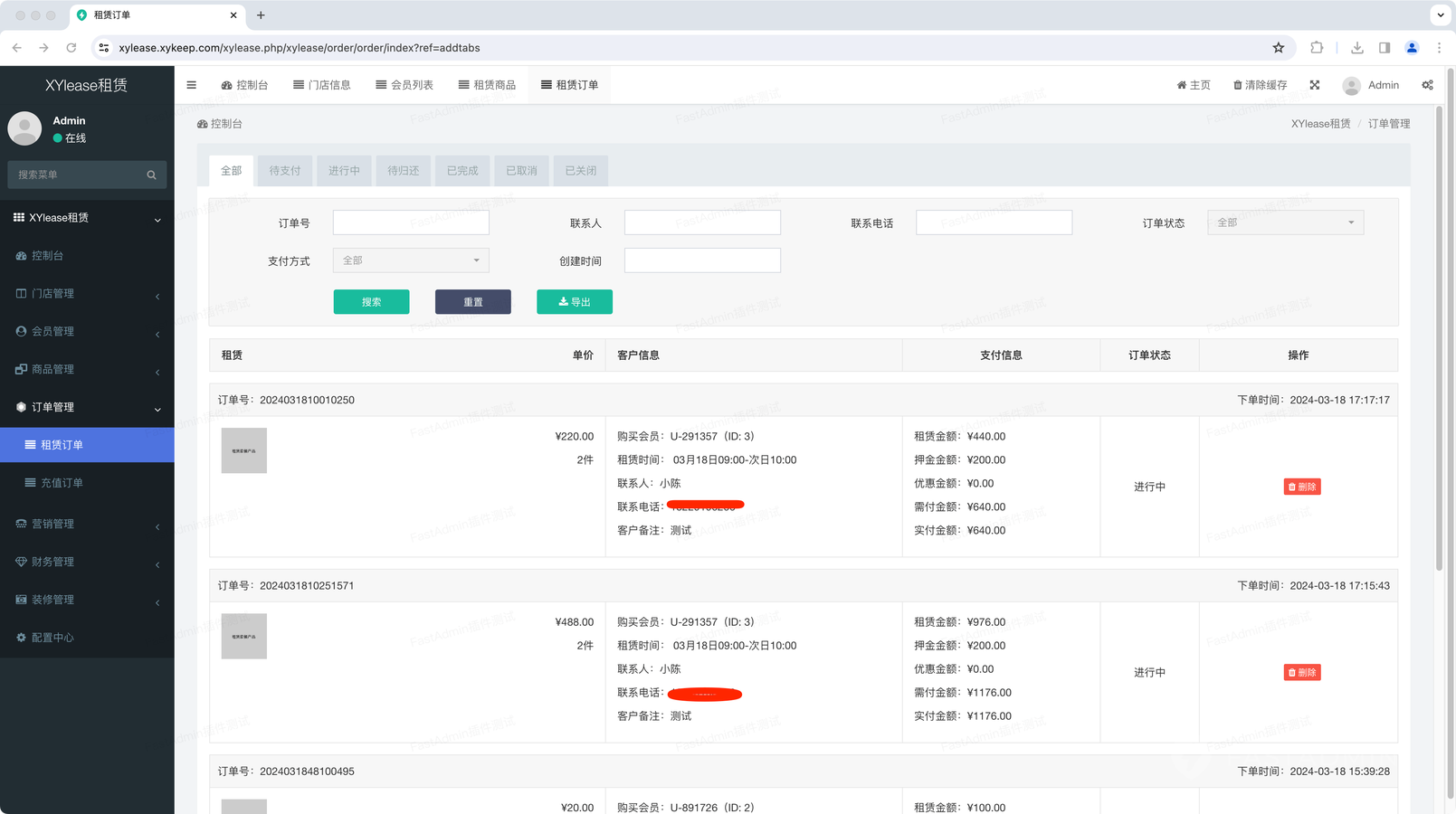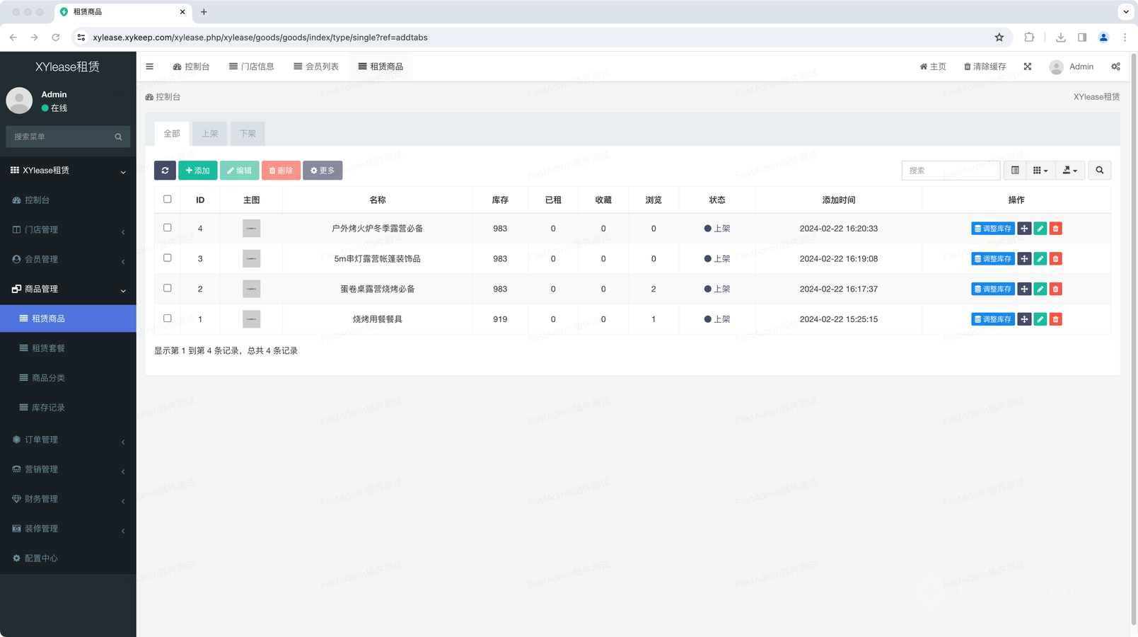 可发布多规格租赁单品和单品组合套餐,后台调整商品库存、价格、详情信息,后台拥有库存记录。