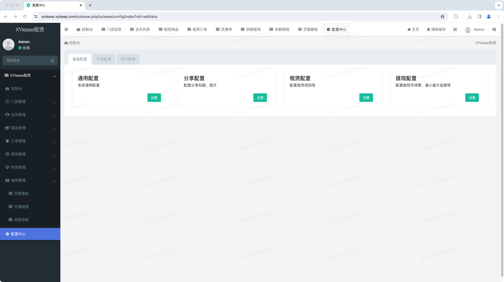 系统通用信息、分销、分享、提现规则、微信支付等信息配置操作。