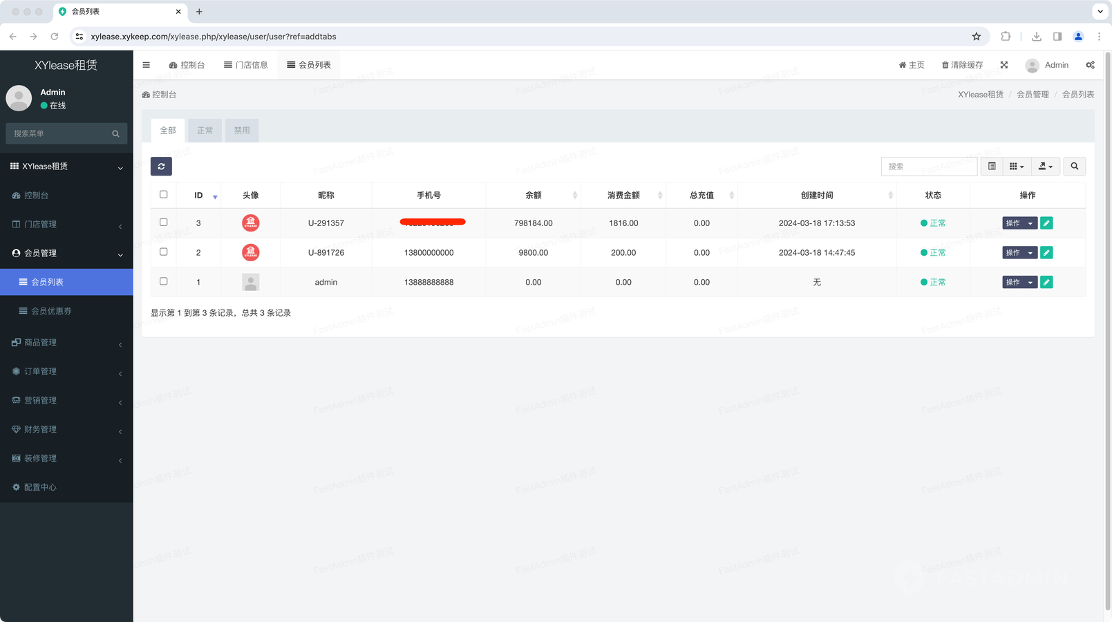 管理会员,可后台调整会员余额、查看用户余额记录。