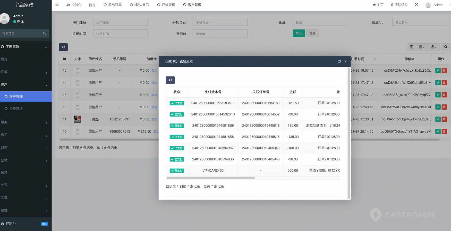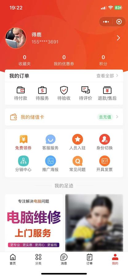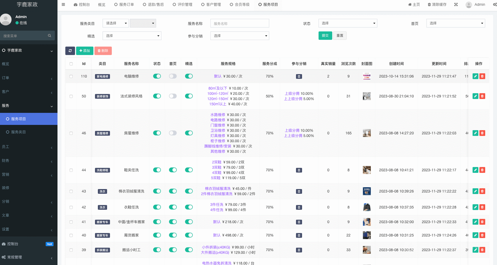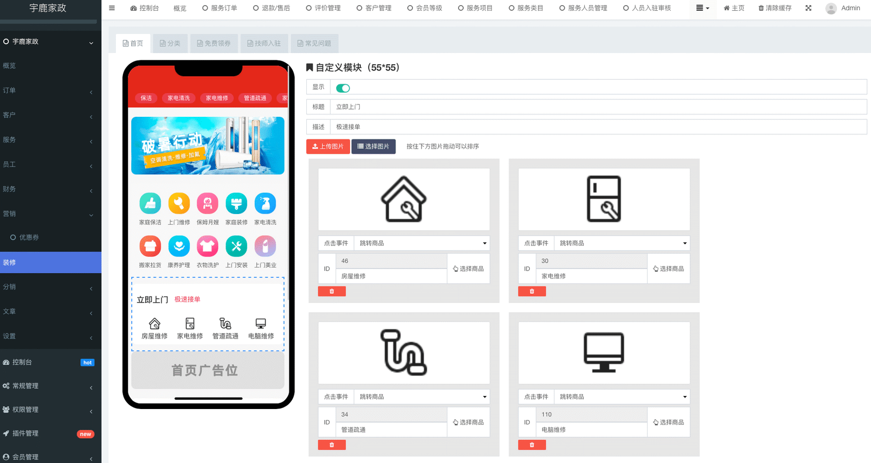 支持内部+外部服务人员登录,接单、更改预约日期、联系客户、收入提现等。