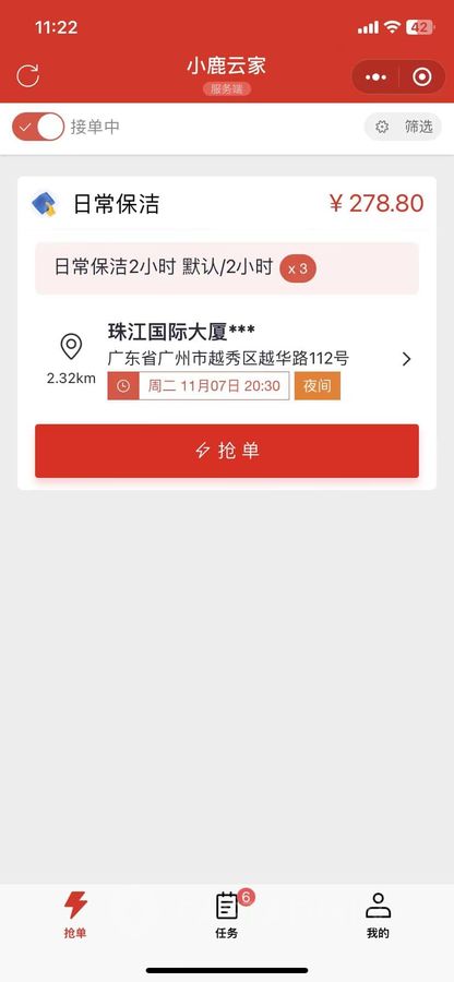 服务订单可指定某人员接单,也可服务人员自由抢单