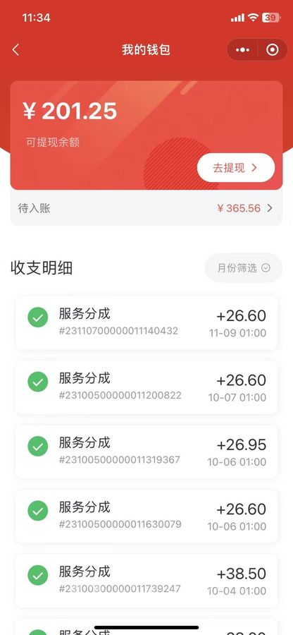 订单服务完成后,收入分成将转入电子钱包,提现到银行卡
